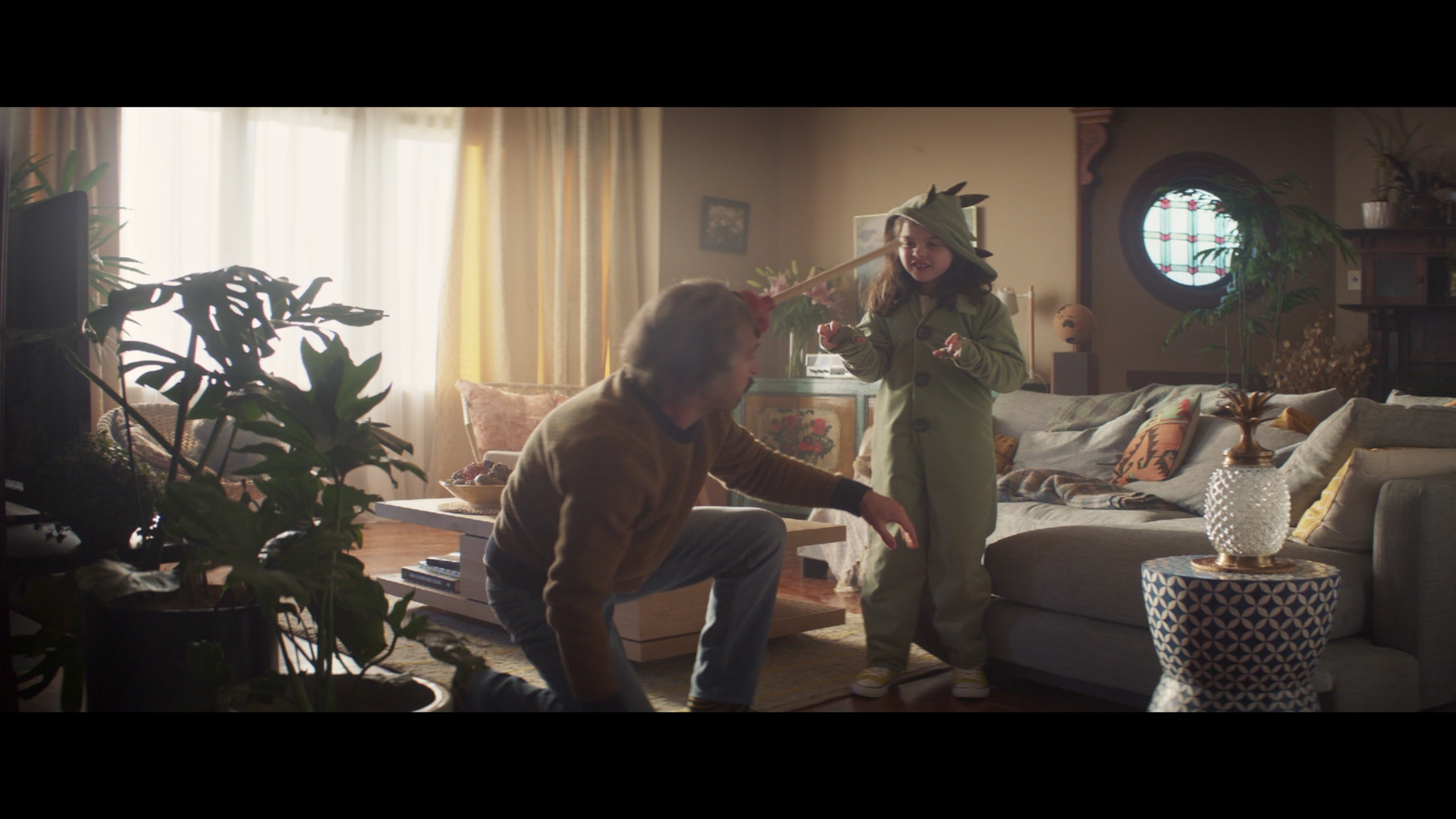 The debut spot follows a juvenile T-rex as she stalks her otherworldly unicorn prey around a family home. Bumping and bashing about, the playful chase narrowly misses precious objects. Towards the end of the spot, the two characters reveal their true identity… a father and daughter living out a fantasy, embodying the idea of Living a Little Freer thanks to AA Insurance.