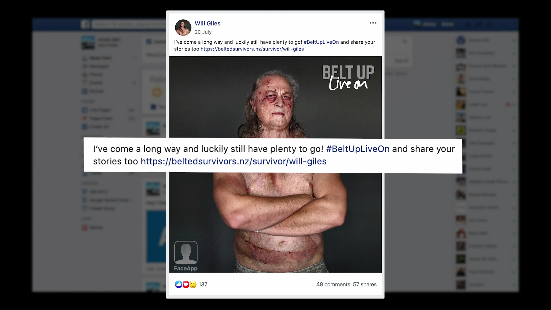 With over half a billion impressions worldwide, Belted Survivors has resonated back where our hard-to-reach audience is centred, in provincial New Zealand. Recall of Belted Survivors is nearly 3x higher amongst young males than the general population. And nearly 4x higher than previous seatbelt campaign recall. For an audience who usually skip or keep scrolling, Belted Survivors saw a 540% increase in audience engagement, compared to NZ Government standards for social marketing to this audience. The campaign also inspired a long-term initiative with the NZ Police, with survivors partnering in the development of workshops focused on seatbelt safety. Their stories have inspired hundreds of others to share their own tale of survival at beltedsurvivors.nz.