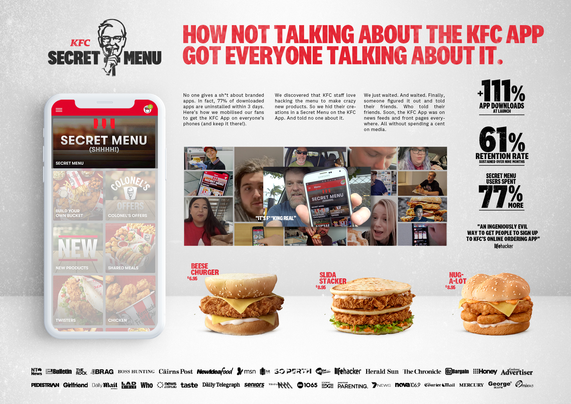 A month after we quietly updated the KFC App, an excited customer finally cracked the code. The news spread like wildfire, resulting in coverage across Australia’s biggest online news outlets.