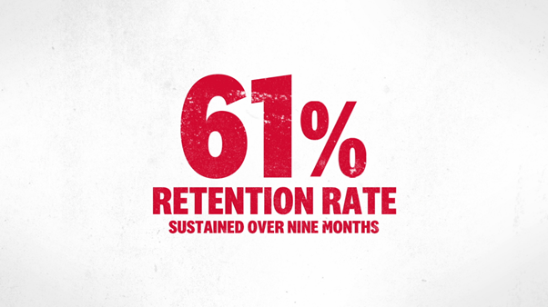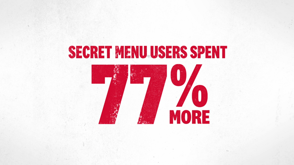 A 61% retention rate sustained over the campaign period (compared to a retention rate of 44% for non-Secret Menu users)