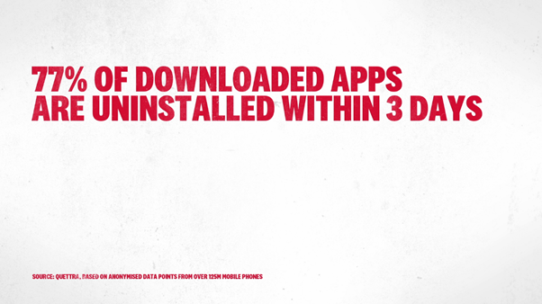 3일이상 앱을 보유하는 사람들의 숫자는 23%에 불과했습니다.