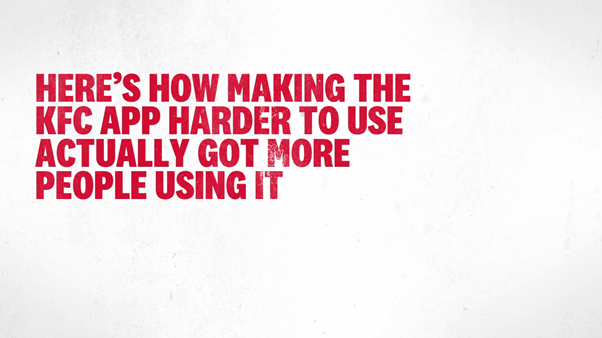 Despite conventional wisdom, we knew that adding friction to the ordering process would actually motivate our customers to care more about the KFC App, not less. Allowing us to take advantage of their engagement to promote the app for us.
