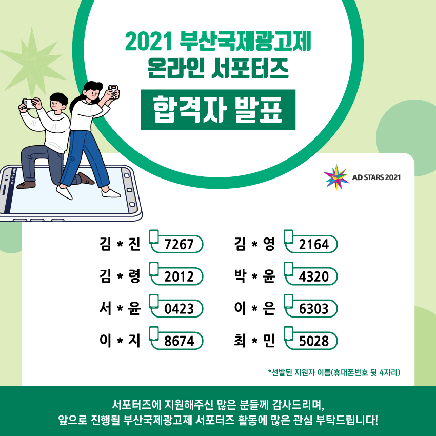 < 2021 부산국제광고제 온라인 서포터즈 합격자 발표 >