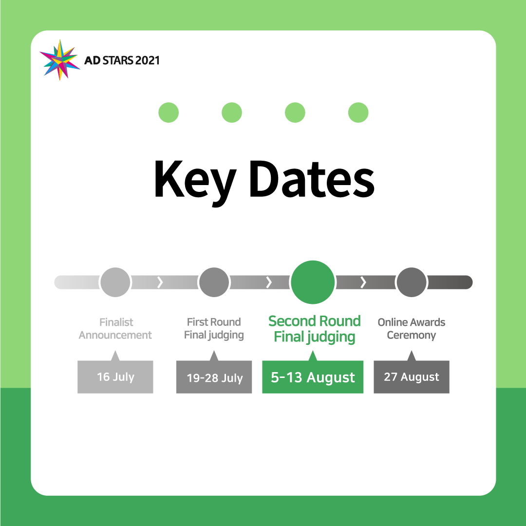 The results of the Second Round Final Judging, which will run through August 13, will be unveiled at the 'AD STARS Online Awards Ceremony' on August 27th!