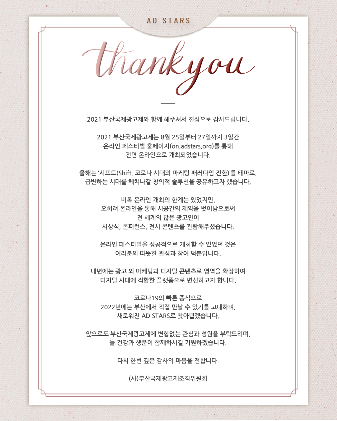 [부산국제광고제 AD STARS 2021] Thank you💌 본문
