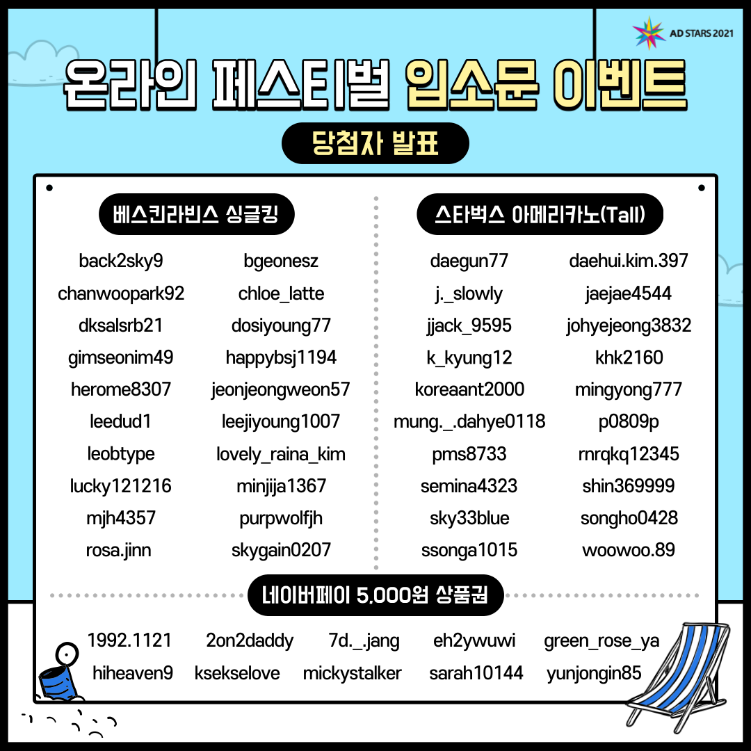 [부산국제광고제 AD STARS 2021] 온라인 페스티벌 입소문 이벤트- #당첨자발표 🎉