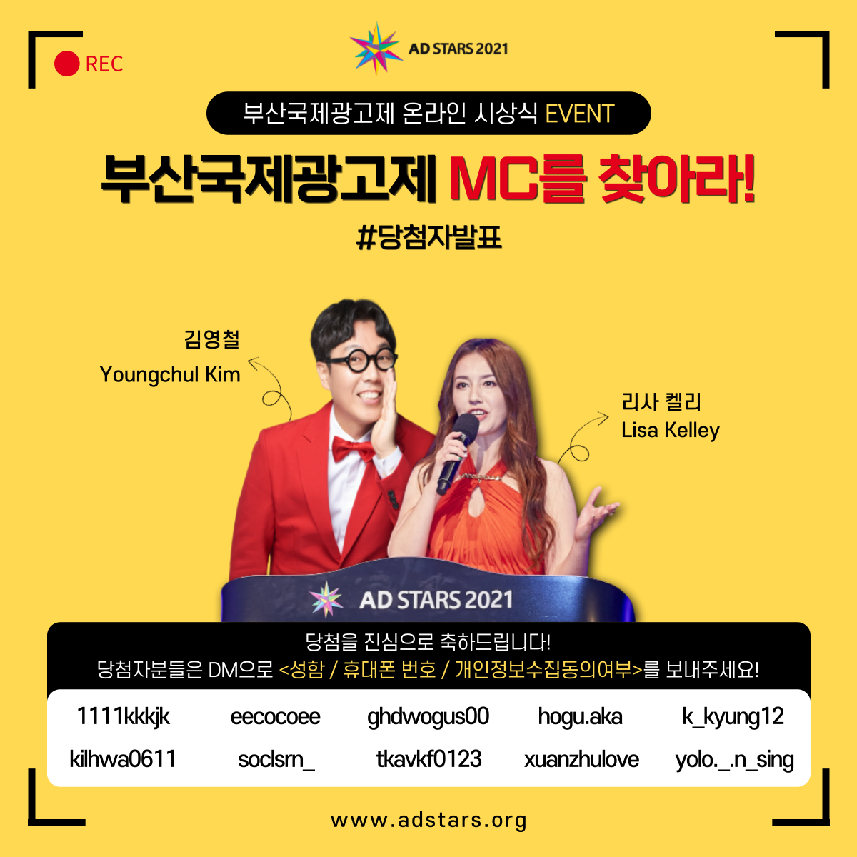 [부산국제광고제 AD STARS 2021] 부산국제광고제 MC를 찾아라🧐 - #당첨자발표 🎉 본문