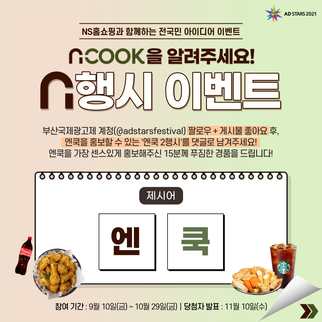 [부산국제광고제 AD STARS 2021] 부산국제광고제 X NS홈쇼핑 전국민 아이디어 이벤트 1차 - N Cook을 알려주세요! #N행시 이벤트'