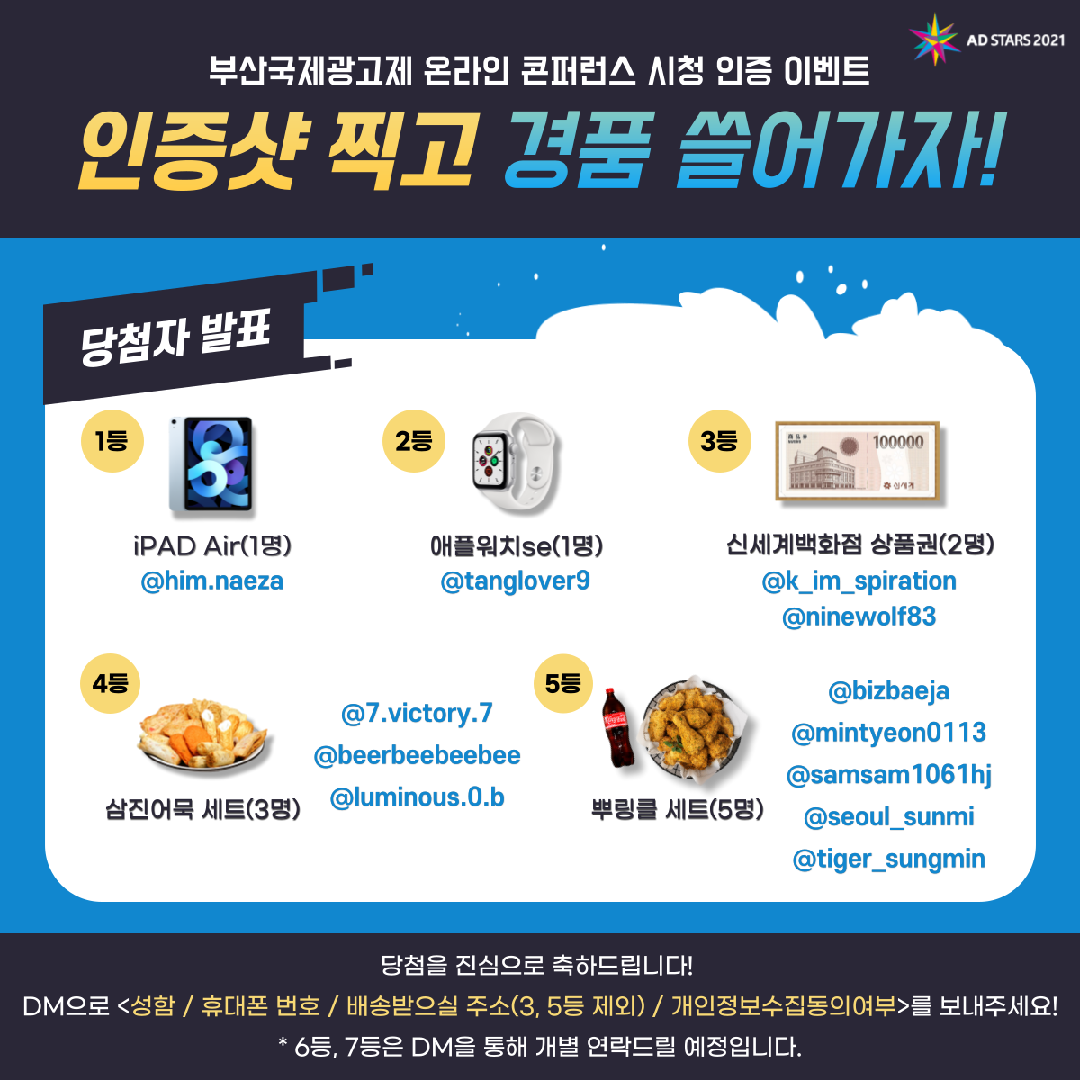[부산국제광고제 AD STARS 2021] 온라인 콘퍼런스 시청 인증 이벤트- #당첨자발표 🎉