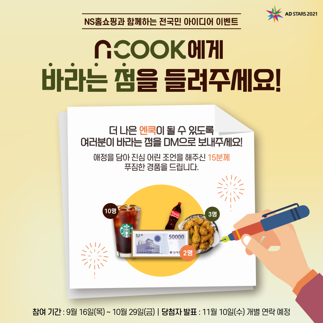 [부산국제광고제 AD STARS 2021] 부산국제광고제 X NS홈쇼핑 전국민 아이디어 이벤트 3차 - N Cook에게 바라는 점을 들려주세요!