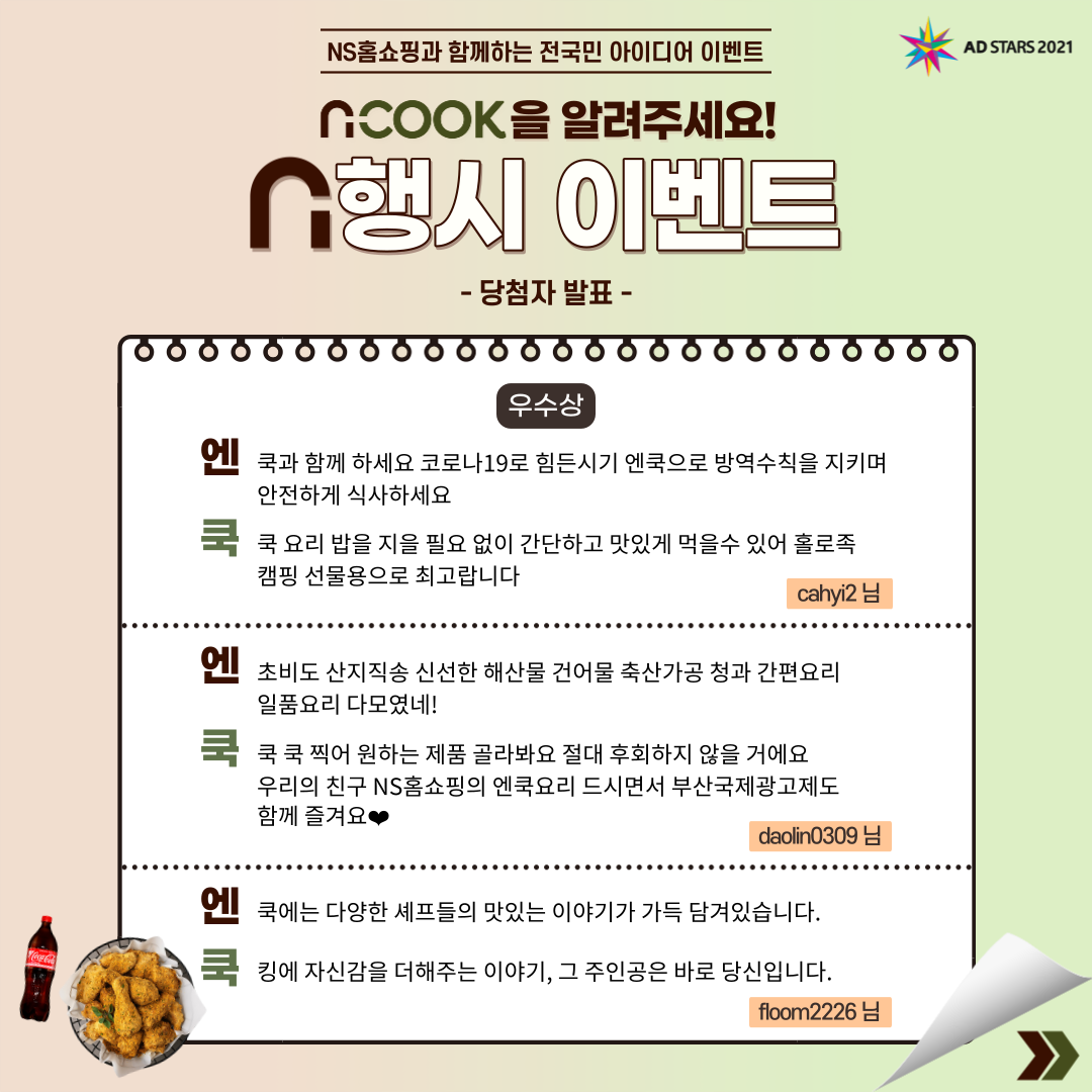 [부산국제광고제 AD STARS 2021] 부산국제광고제 X NS홈쇼핑 전국민 아이디어 이벤트 1차 - 당첨자 발표