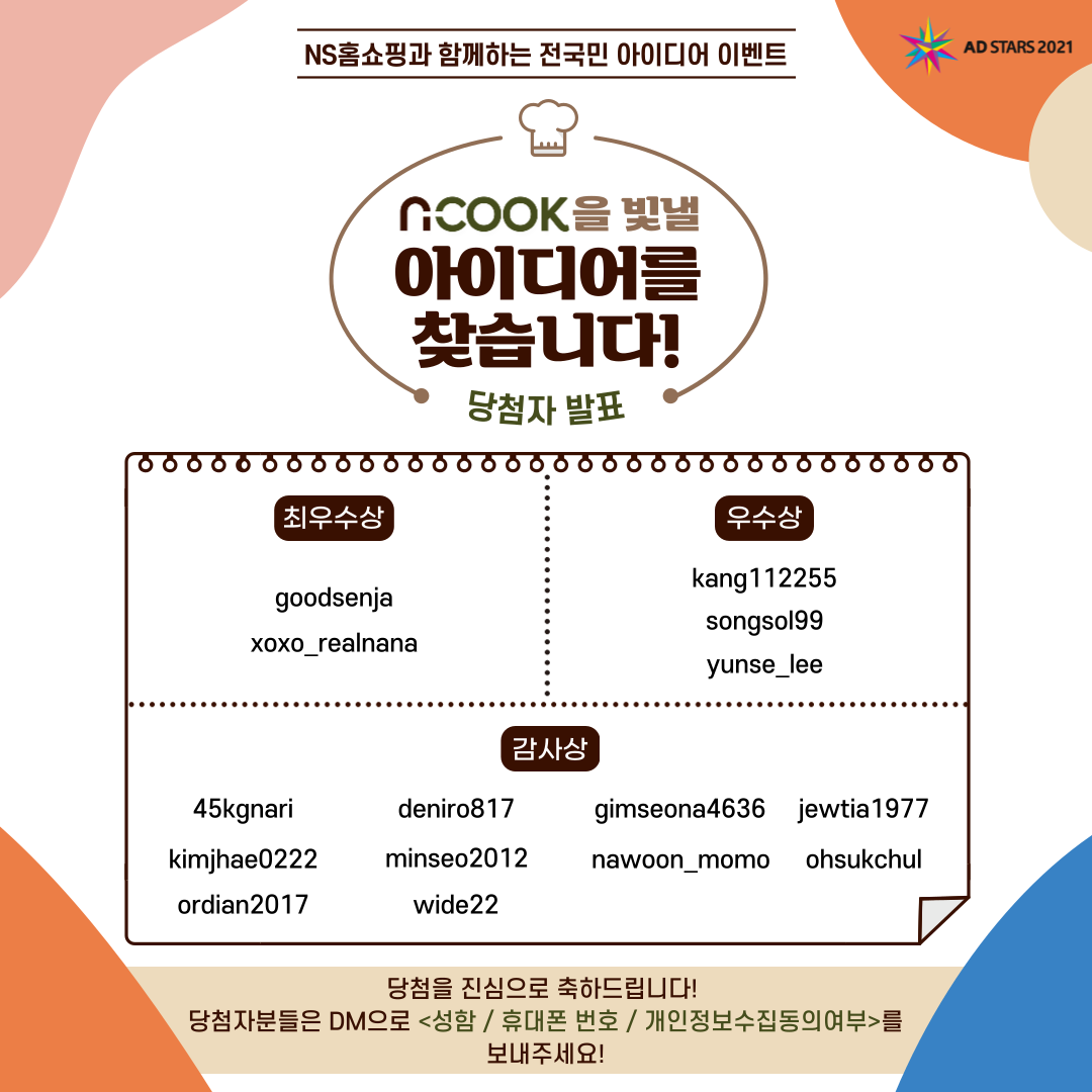 [부산국제광고제 AD STARS 2021] 부산국제광고제 X NS홈쇼핑 전국민 아이디어 이벤트 2차 - 당첨자 발표