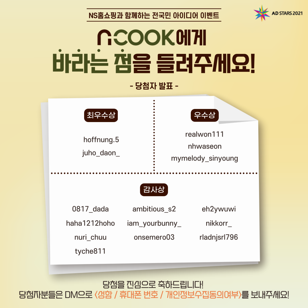 [부산국제광고제 AD STARS 2021] 부산국제광고제 X NS홈쇼핑 전국민 아이디어 이벤트 3차 - 당첨자 발표