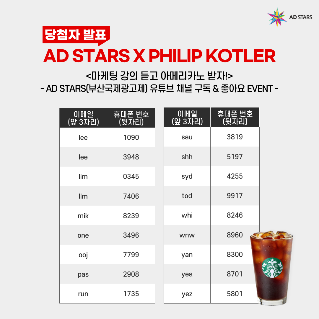 [부산국제광고제 AD STARS 2022] AD STARS X PHILIP KOTLER - 당첨자발표🎉