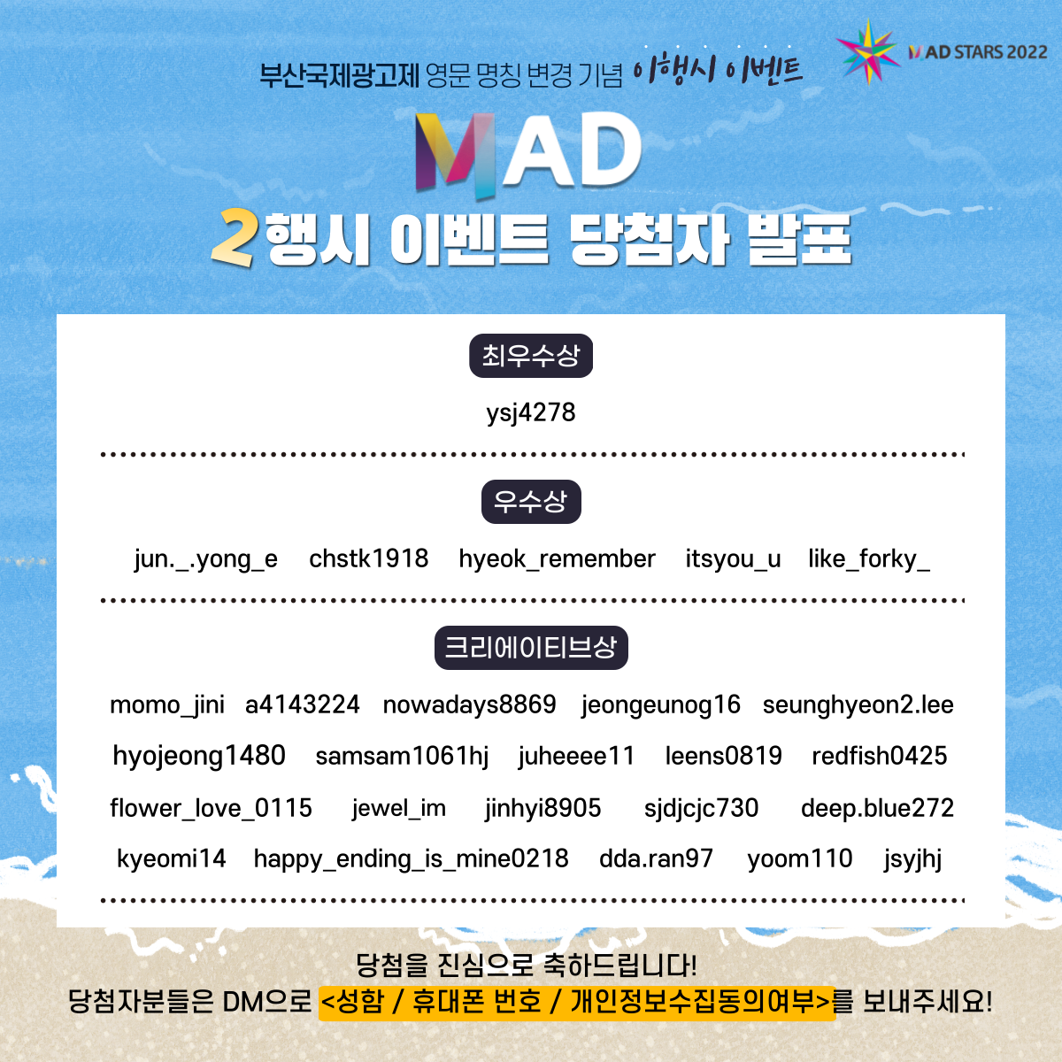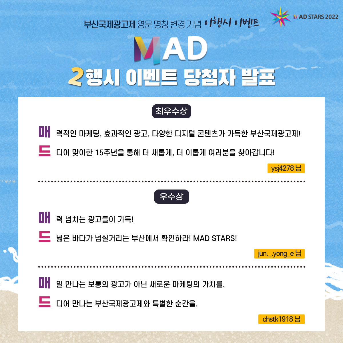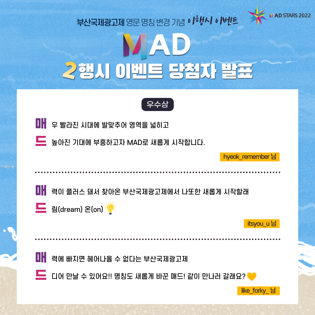 [부산국제광고제 MAD STARS 2022] 영문 명칭 변경 기념 MAD 이행시 이벤트 - 당첨자 발표