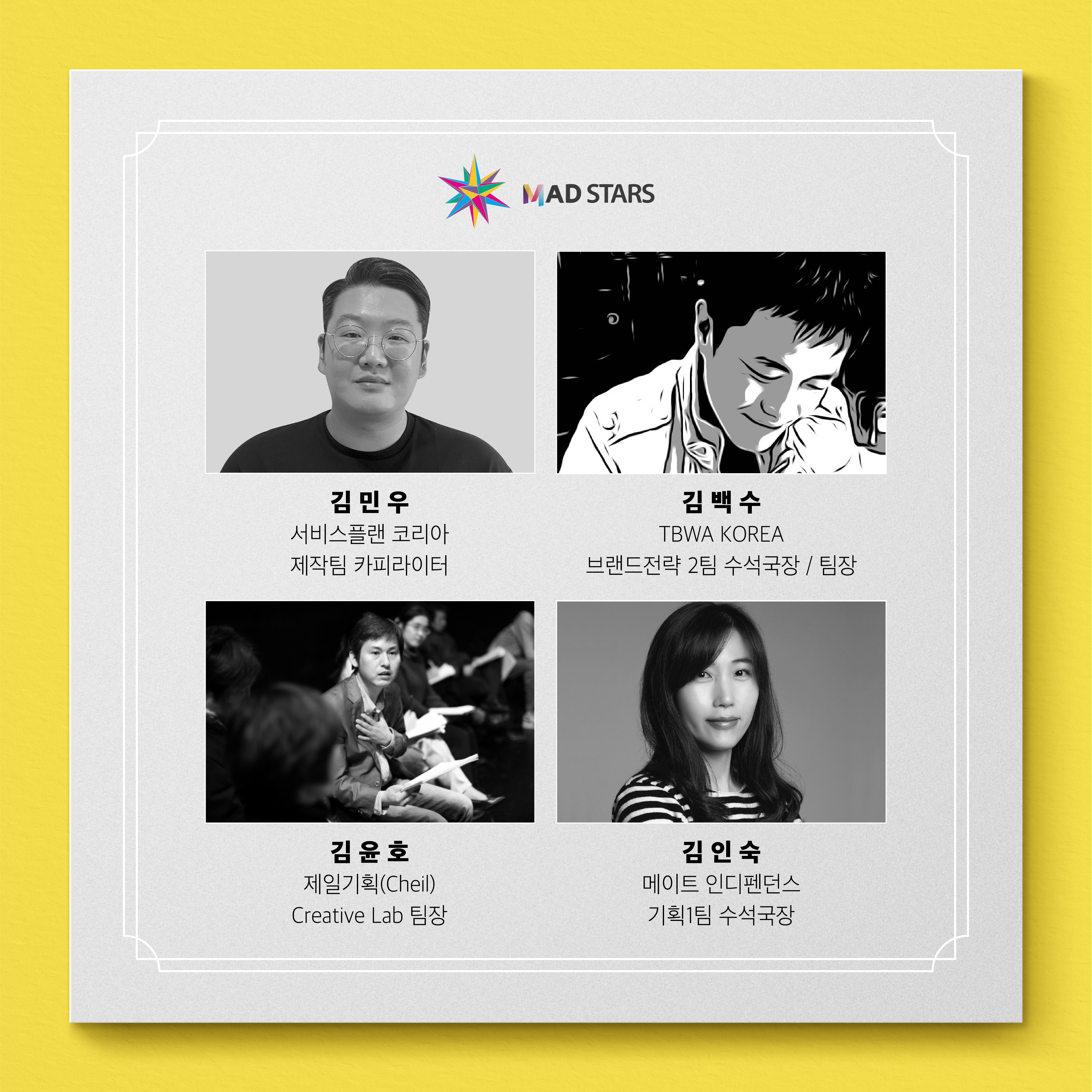 여러분들의 톡톡 튀는 아이디어들을 직접 심사해주실 현직 광고인 8분을 소개합니다!🤓