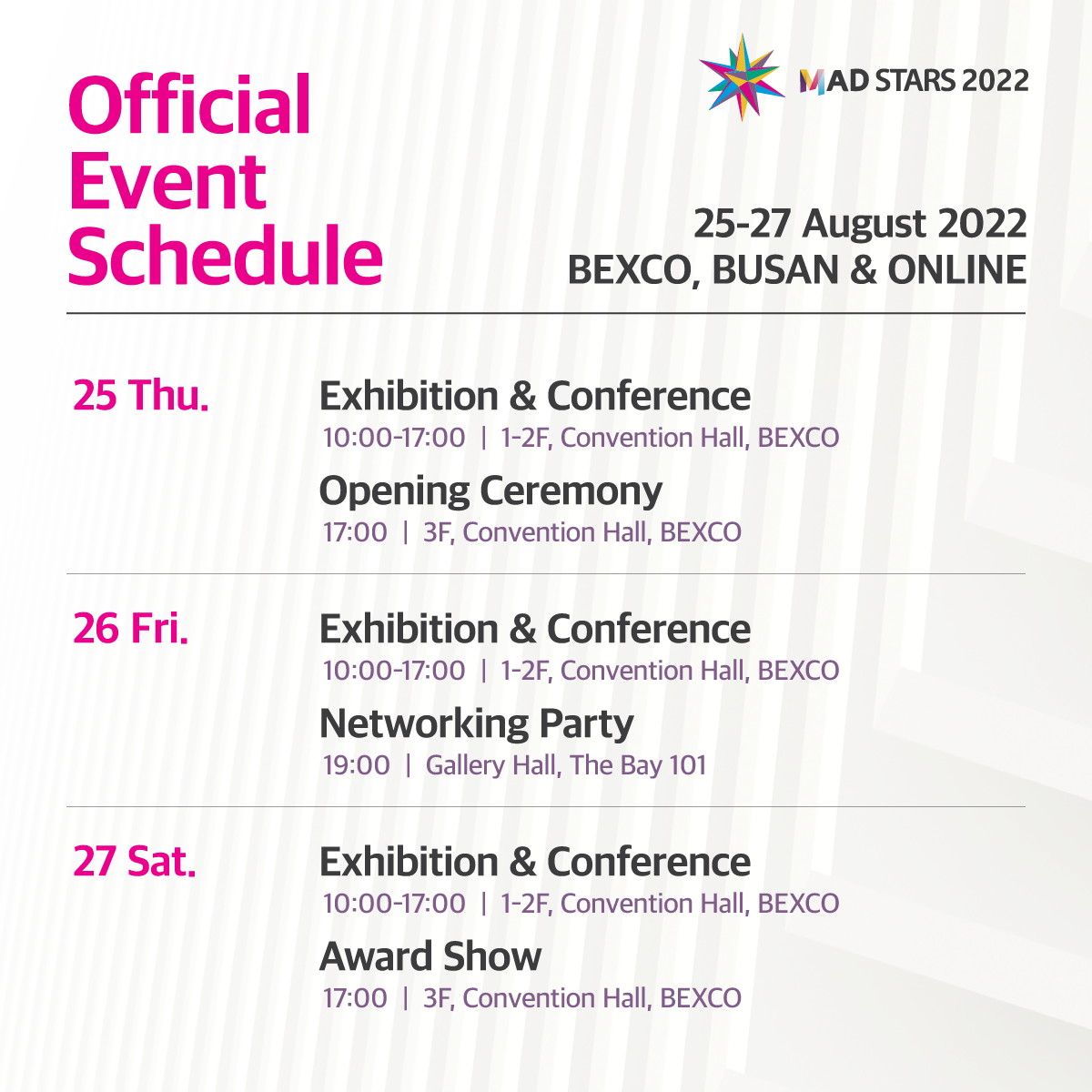 The event will be held for three days, from the coming Aug 25th (Thu) to Aug 27th (Sat).🥳