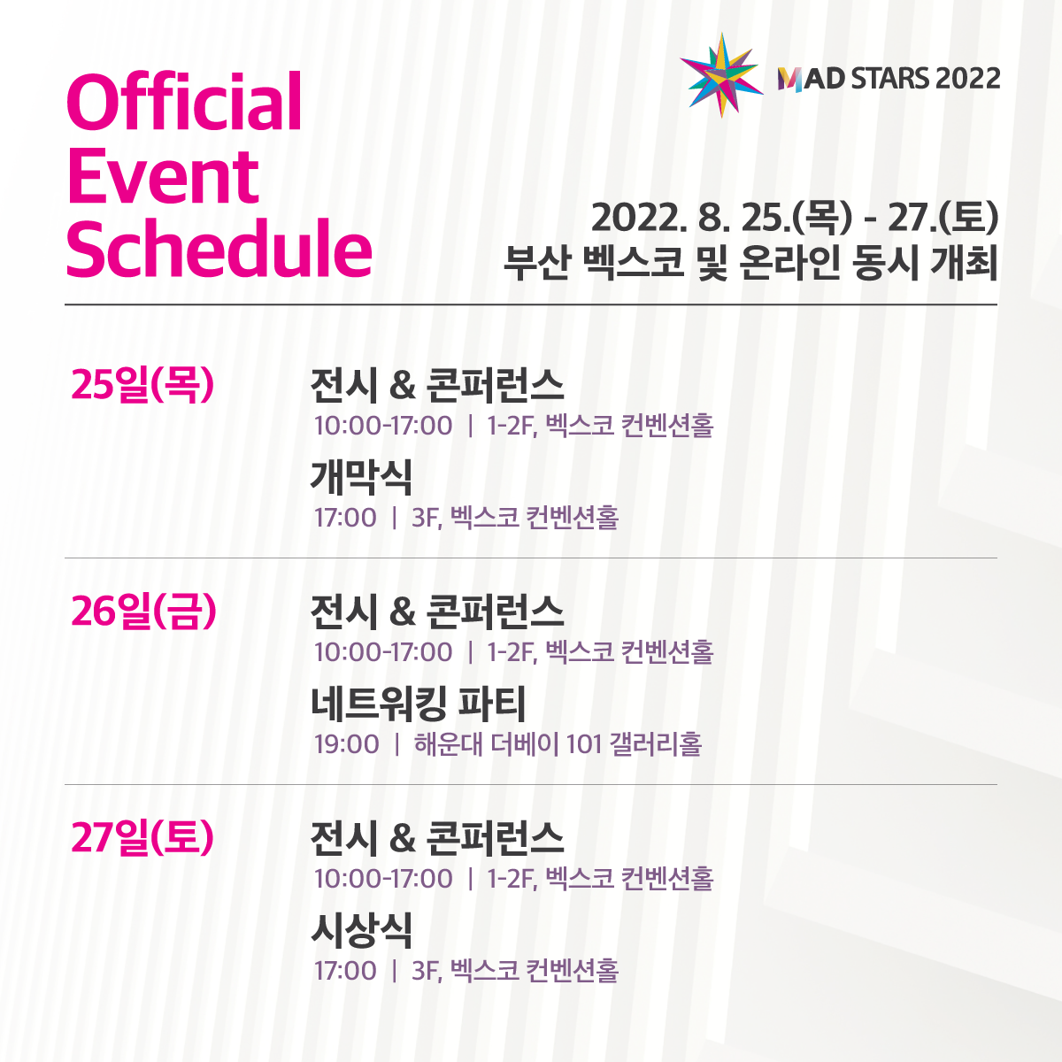 부산 벡스코 및 해운대 일원에서 진행됨은 물론,
