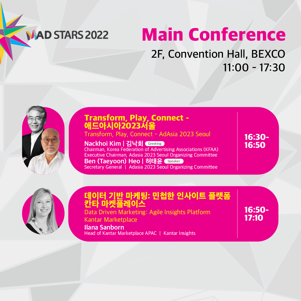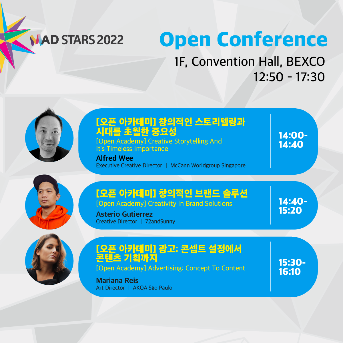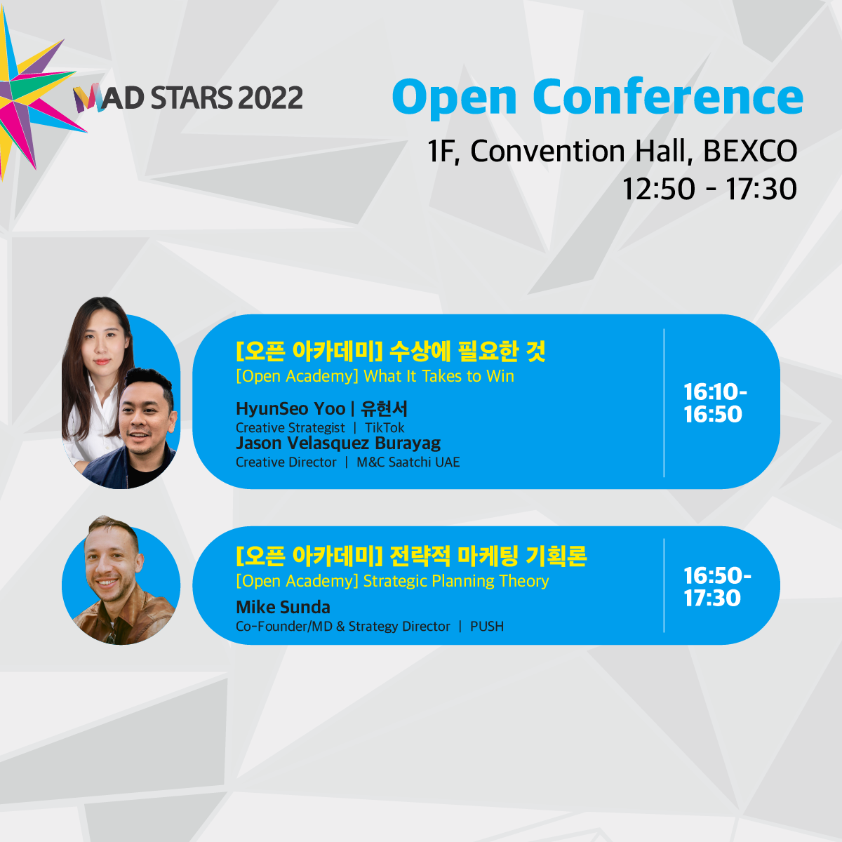 You will never want to miss out on <Global Open Academy> scheduled from 2 p.m. to 5:30 p.m. at Open Conference on the 1F at BEXCO Convention Hall where six instructors from Global MAD Academy, a program where marketing,