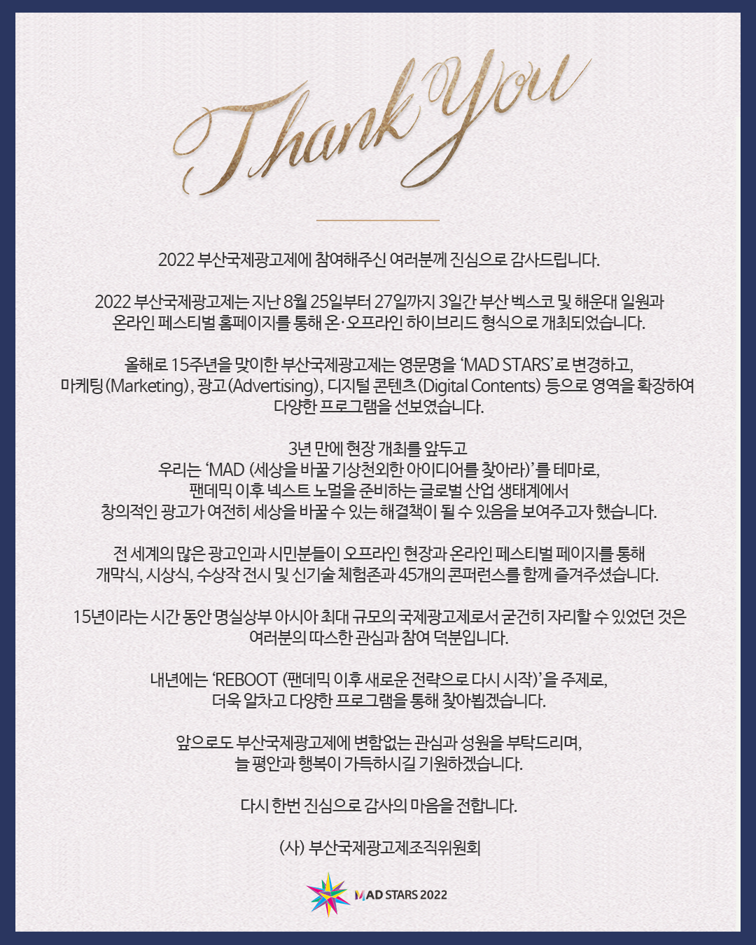 '2022 부산국제광고제'에 참여해주신 여러분께 진심으로 감사드립니다😊