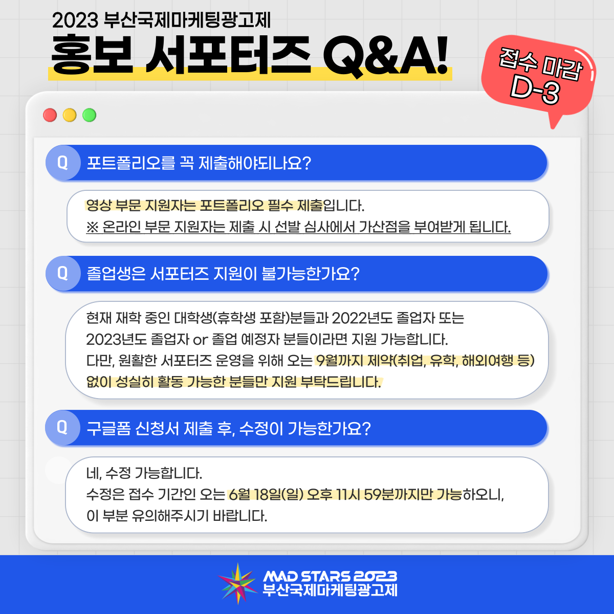 [부산국제마케팅광고제|MAD STARS] 2023 부산국제마케팅광고제 홍보 서포터즈 Q&A 본문