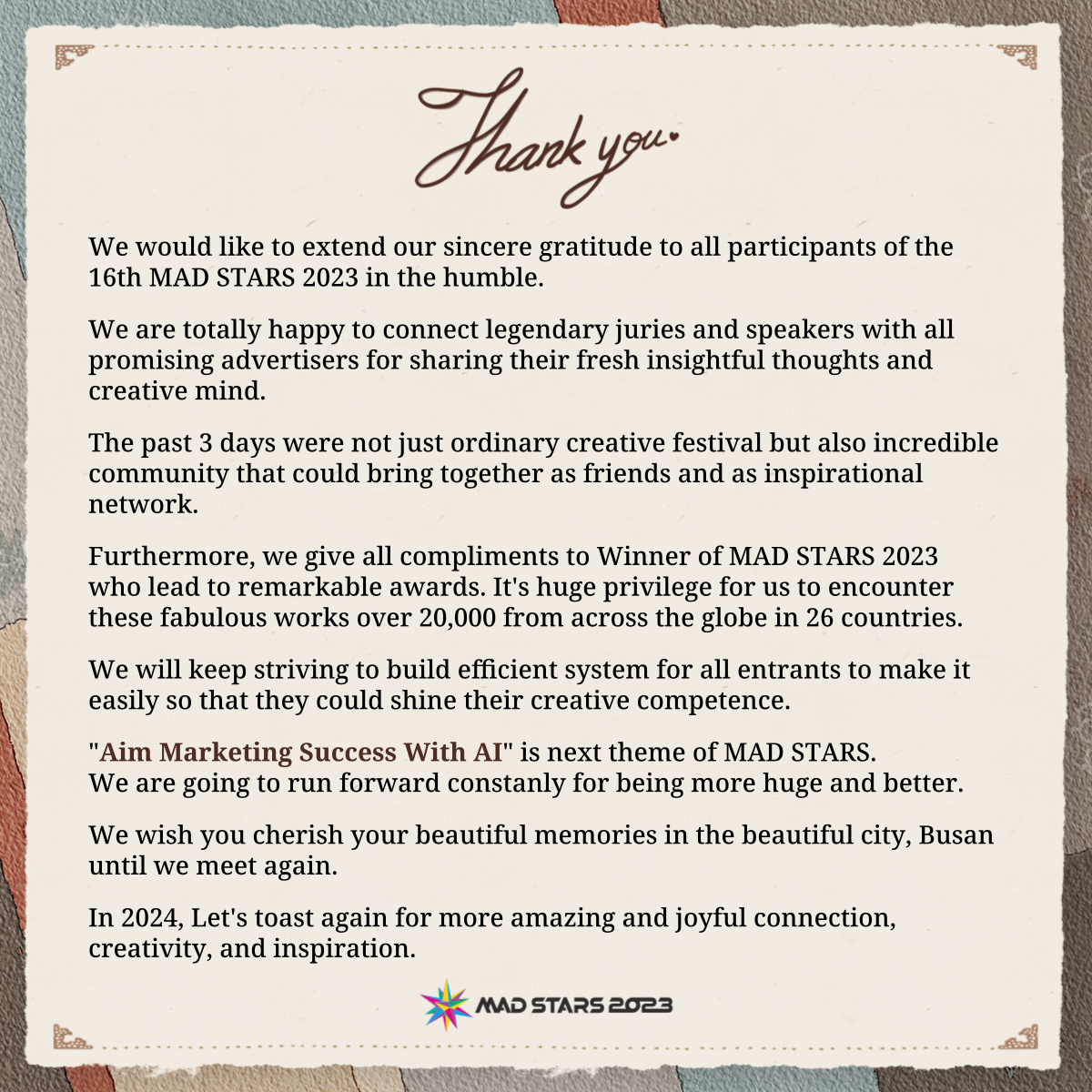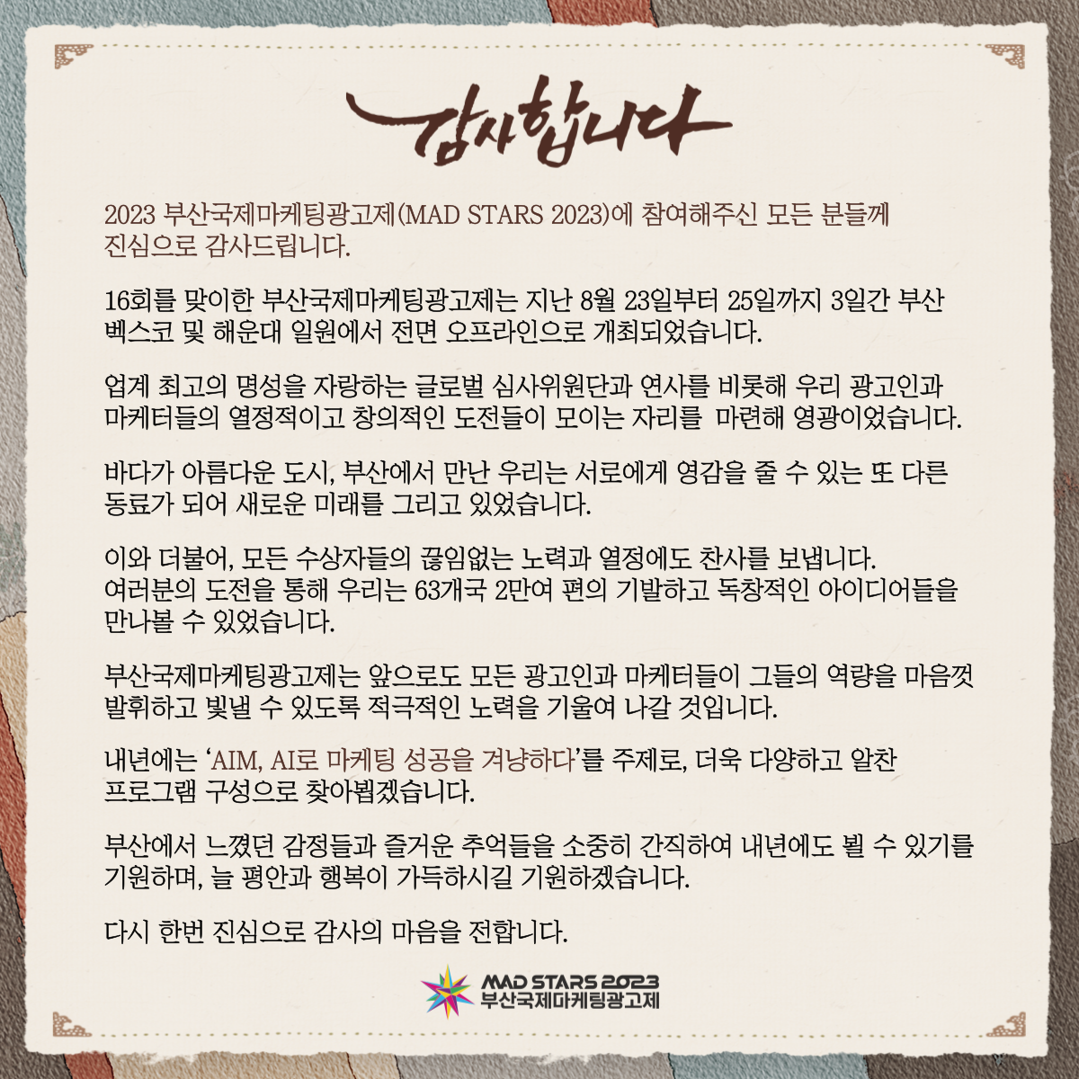 [부산국제마케팅광고제|MAD STARS] 보내주신 성원에 감사드립니다🧡 본문