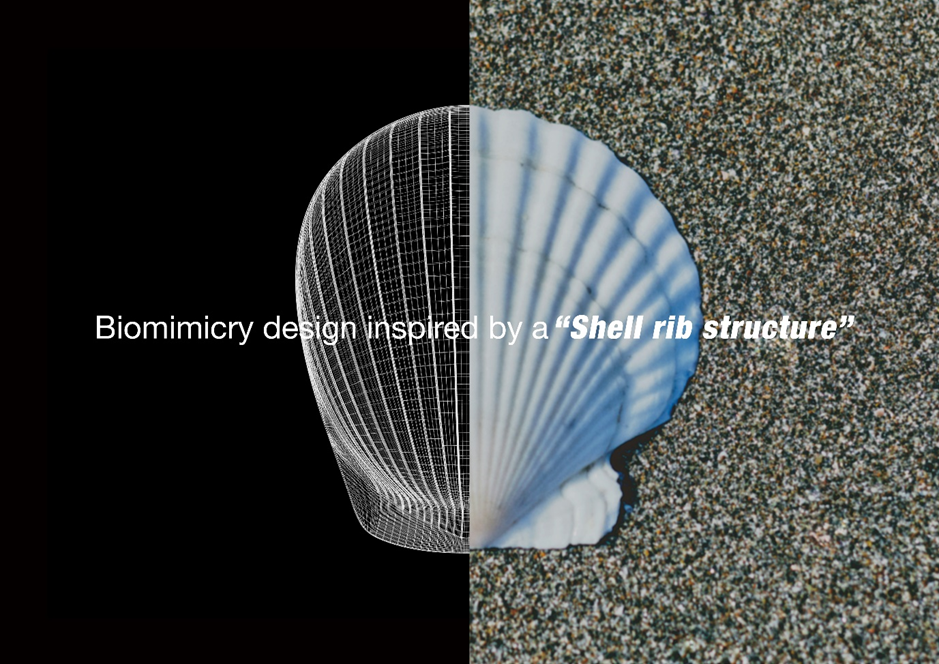 A: 사실 쉘멧의 디자인이 신의 선물이죠. 우리는 쉘멧의 기본 재료가 되는 가리비 껍데기를 시각적으로 표현하기 위해 실제 가리비 껍데기에서 볼 수 있는 갈비뼈 구조를 모방했습니다. 그런데 오히려 이 갈비뼈 구조의 디자인이 쉘멧의 강도와 내구성을 높여 제품으로써 실용성까지 높였다는 사실을 알게 되었습니다. 처음에는 이 디자인 때문에 비용이 상승해 여러 논의를 거쳐야 했지만, 이 디자인을 추구함으로써 쉘멧은 일반 플라스틱 헬멧에 비해 30% 더 강한 강도를 달성할 수 있었습니다.