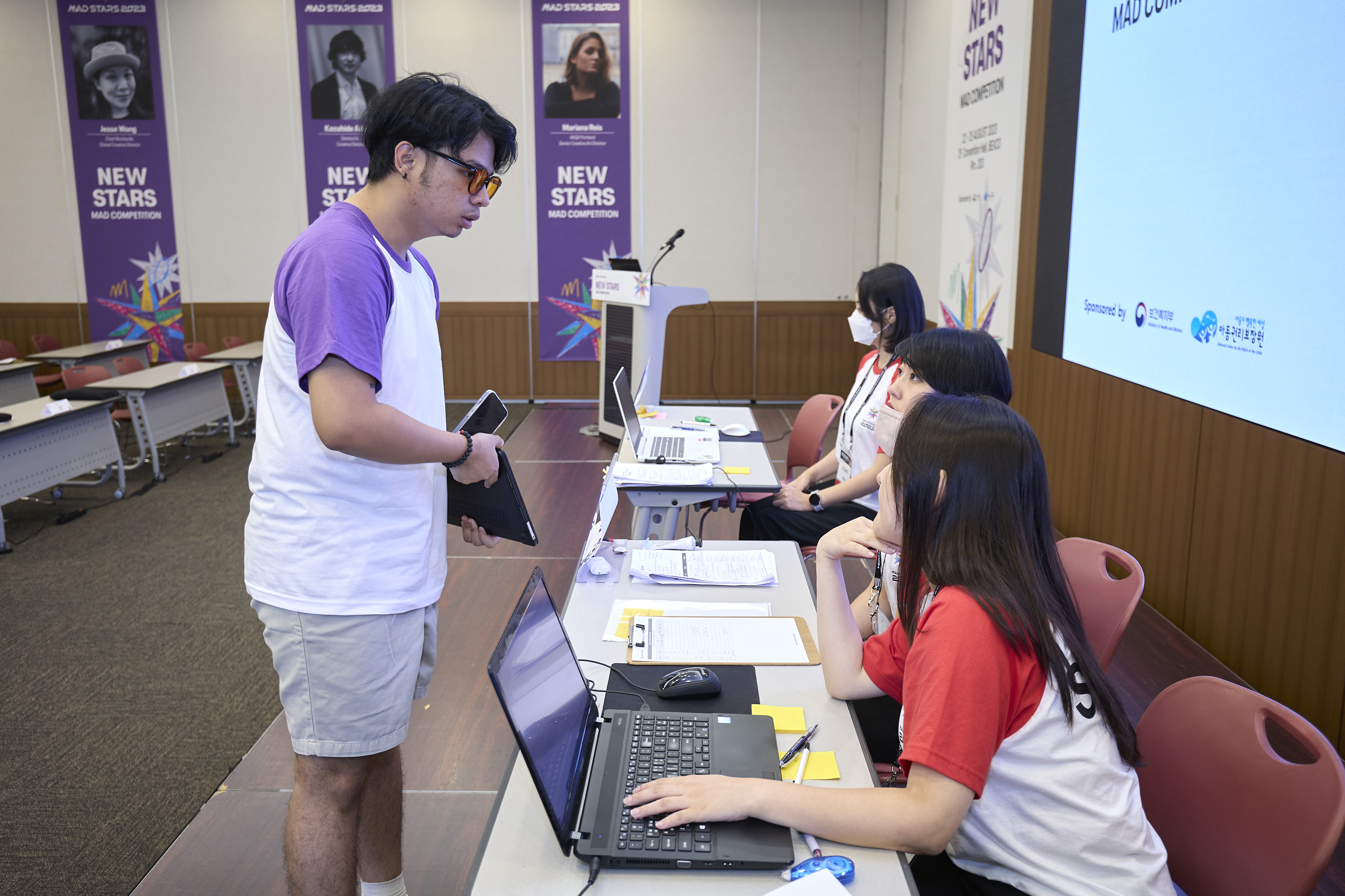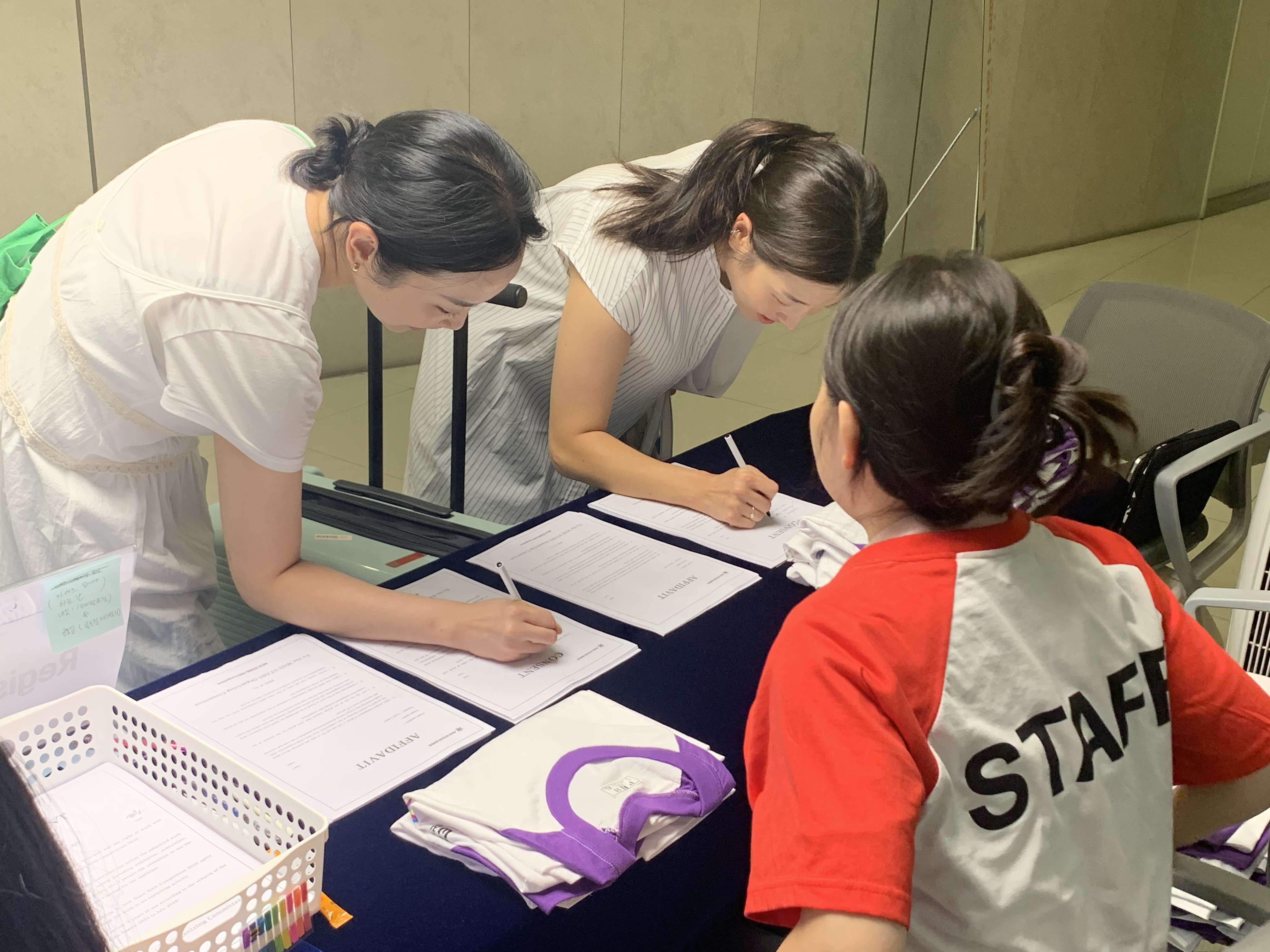 오직 크리에이티브에 대한 열정으로 세계 각국에서 부산에 모인 뉴스타즈 본선 경연 참가자들에게는 5박 6일 동안의 숙식이 제공되는데요. 참가자들은 체크인 후, 별도로 마련된 공간에서 개별 오리엔테이션과 뉴스타즈 공식 유니폼을 받게 됩니다!