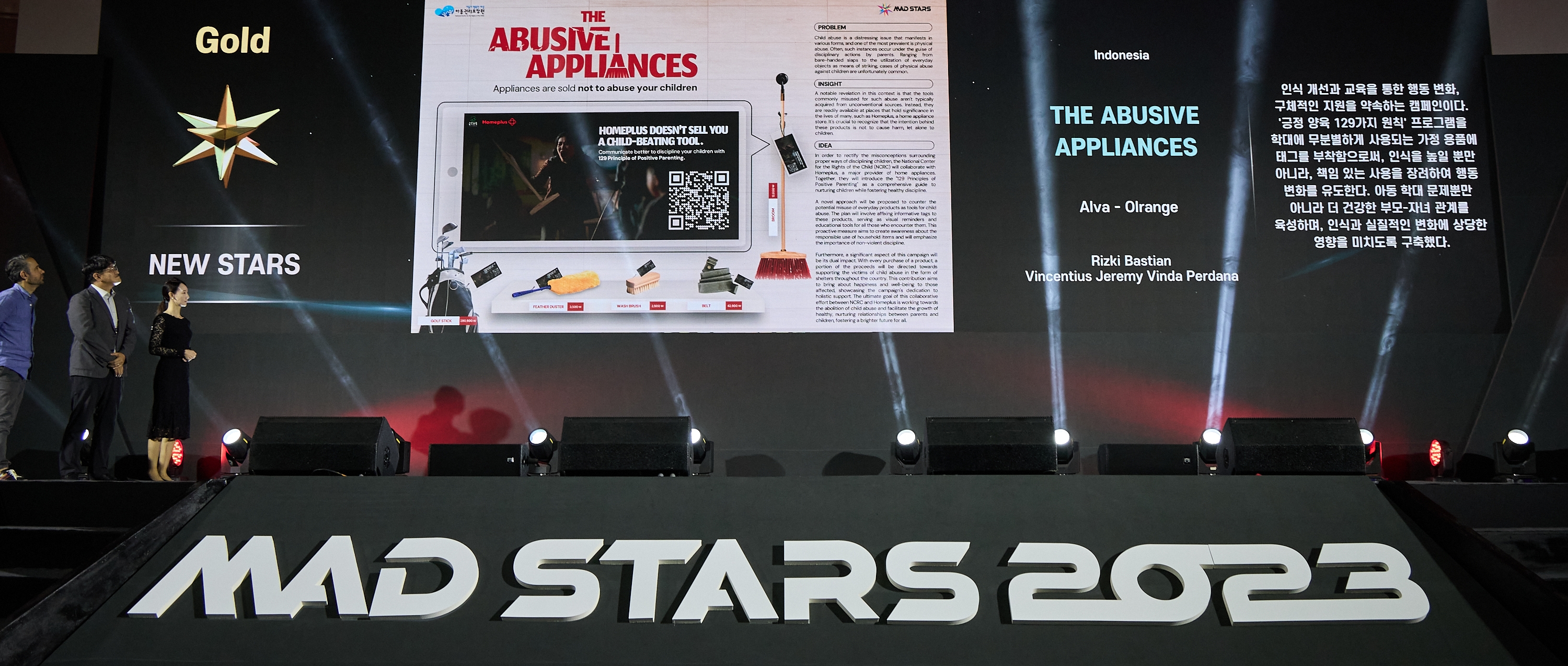긍정양육을 주제로 개최됐던 2023 뉴스타즈 경진대회에서는 Alva-Orange Indonesia 소속 Rizki Bastian과 Vincentius Jeremy Vinda Perdana의 팀이 제작한 ‘The Abusive Appliances’가 골드를 수상했는데요!