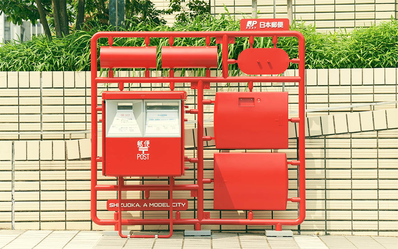 우체통, 공중전화, 벤치, 가로등, 사진 명소 등 시즈오카의 여러 시설물이 조립 전 프라모델 모형으로 변신했습니다.