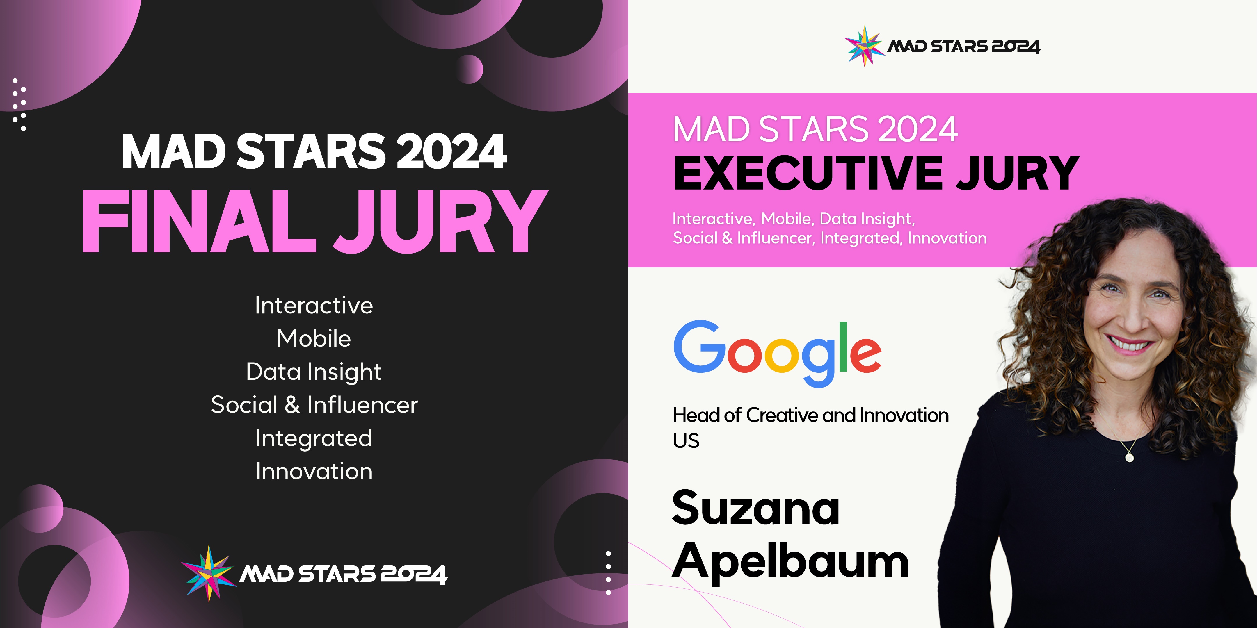 Meet the final jury in the 'Print, Radio & Audio, Design, Direct, Strategy, Interactive, Mobile, Data Insight, Social & Influencer, Integrated, Innovation' categories, led by Suzana Apelbaum, Google Head of Creative and Innovation!👏