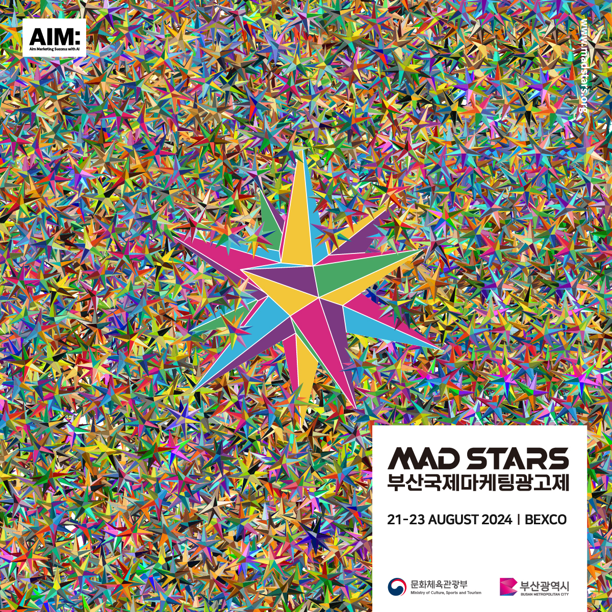 17회를 맞이하는 부산국제마케팅광고제(이하 MAD STARS)의 주제는 ‘AIM, AI로 마케팅 성공을 겨냥하다’로 다양한 인공지능 기술을 활용한 마케팅 성공 사례를 공유하고, 산업의 흐름과 변화를 조망할 예정인데요.