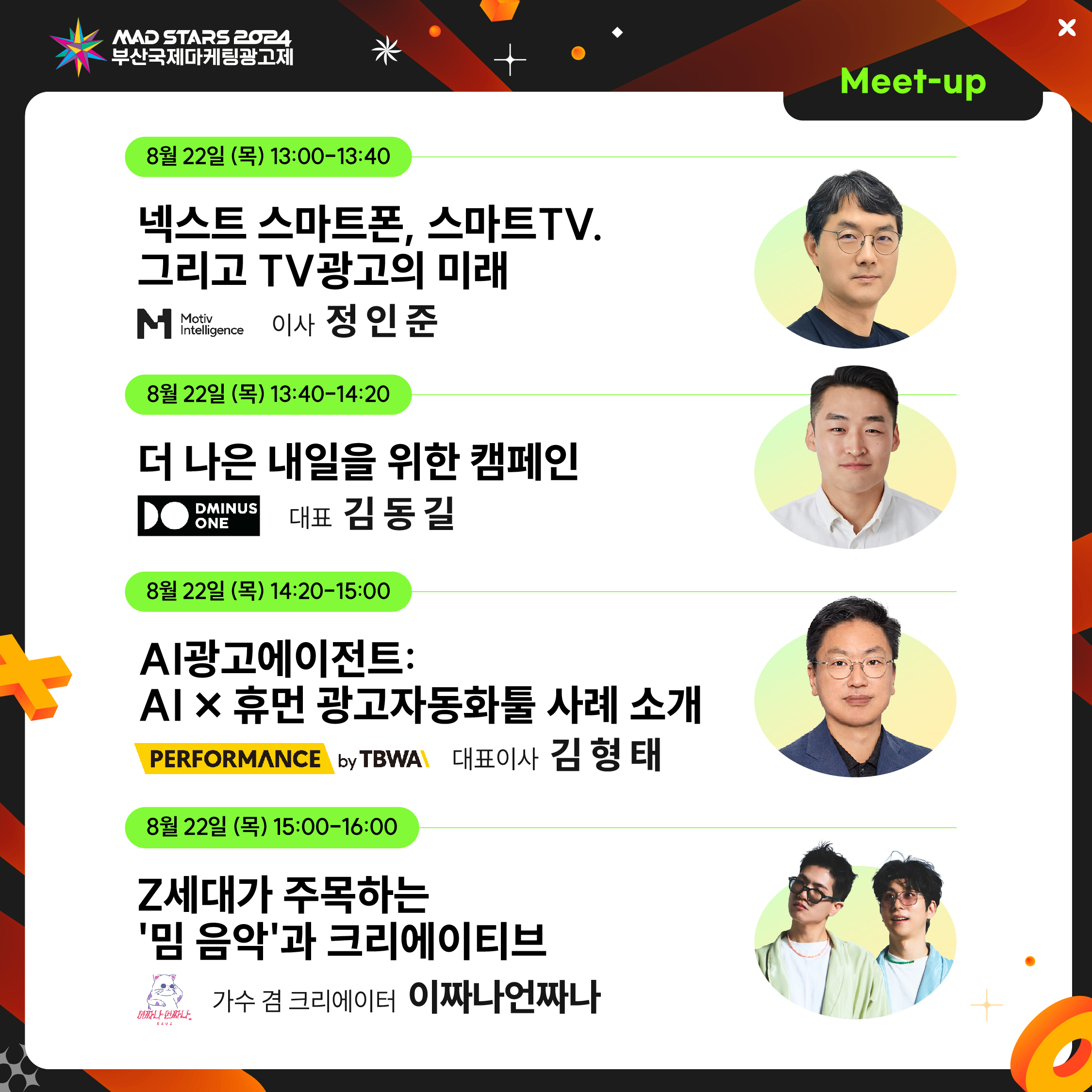 그들이 MAD STARS 2024 둘째 날, 밋업 콘퍼런스에 연사로 참여합니다.