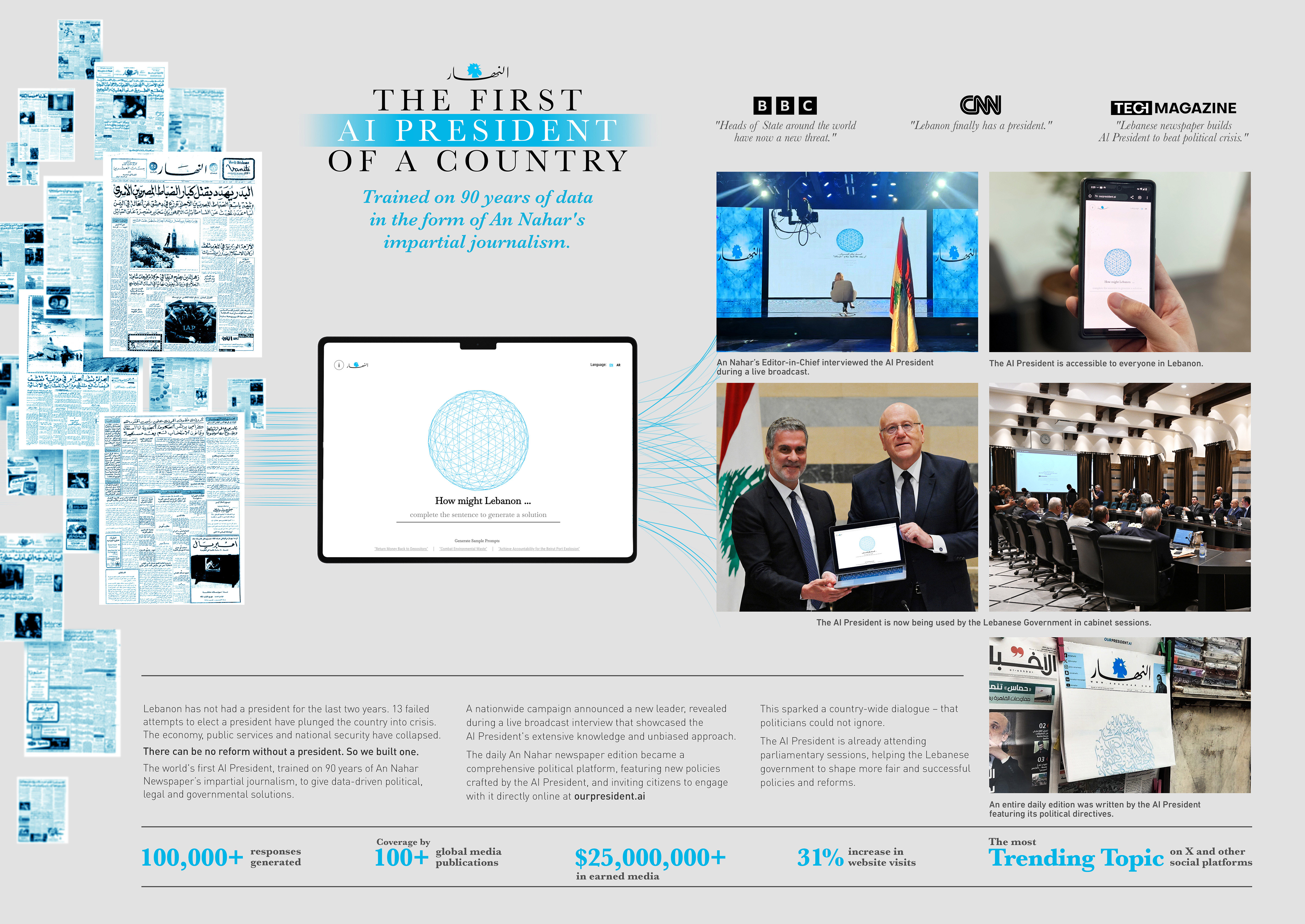 그랑프리 수상작을 선정할 때, 많은 작품에 대한 심도 깊은 논의가 많이 이루어졌습니다. 그 중 하나가 Print 부문에 출품된 The AI President였는데요. 이 캠페인은 거대하고 아름다운 작업이었지만, 올바른 카테고리에 속해 있는지에 대한 논의가 많았죠.