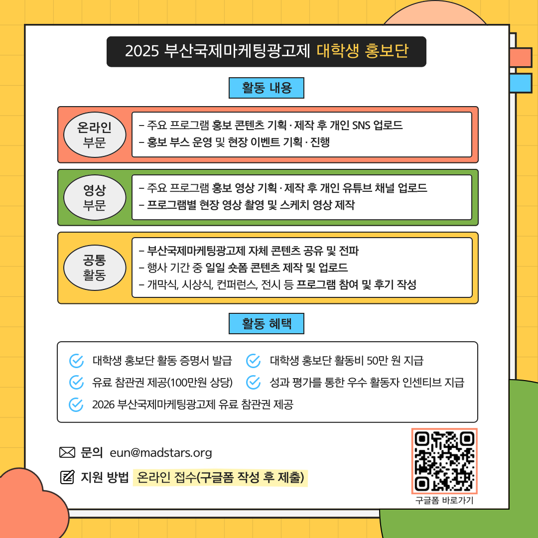 지금 바로 지원하고, 2025 부산국제마케팅광고제와 함께 해주세요!🙌