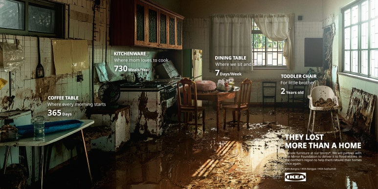 이 아픔에 공감하며 이케아는 'FLOODED ROOM' 캠페인을 통해