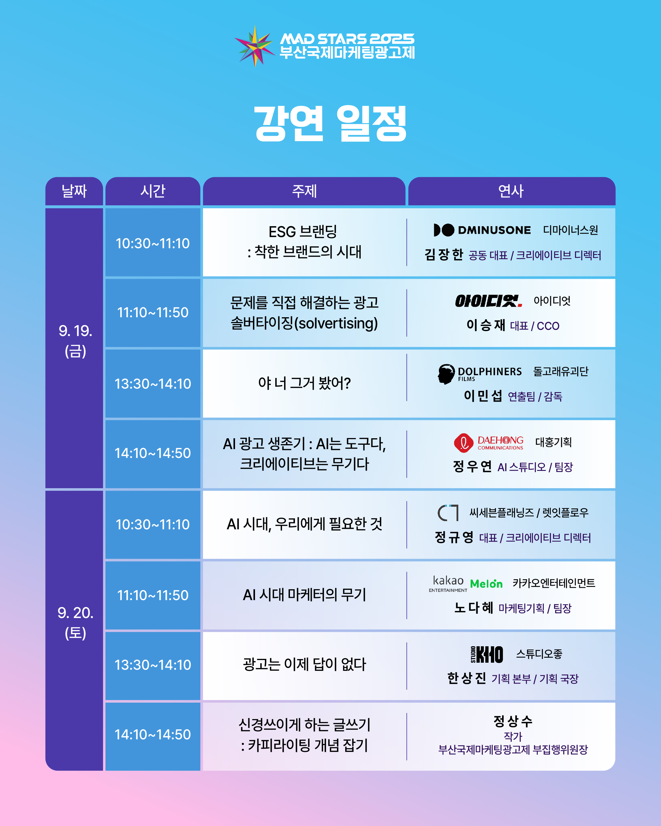 [부산국제마케팅광고제ㅣMAD STARS] 2025 부산국제마케팅광고제, 크리에이티브 팝업 강연자 소개
