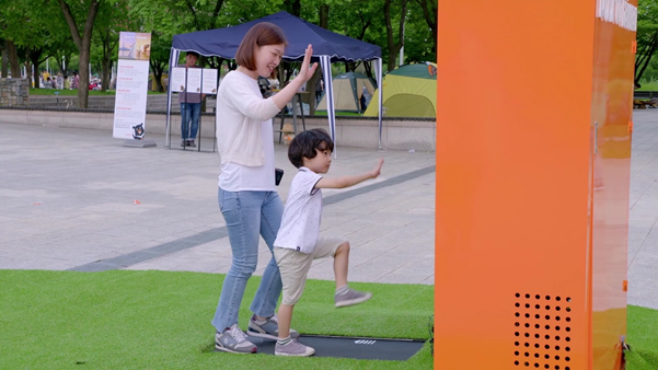 키오스크는 360 film 기술로 촬영되어 사람들이