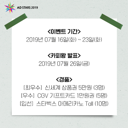 약간 아쉬움이 남지만 크리에이티브한 우수 카피왕에게는 CGV 기프트카드 1만원권을!