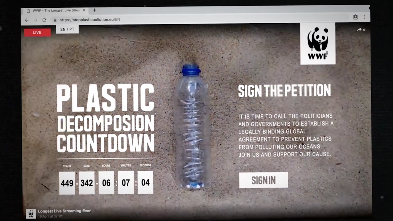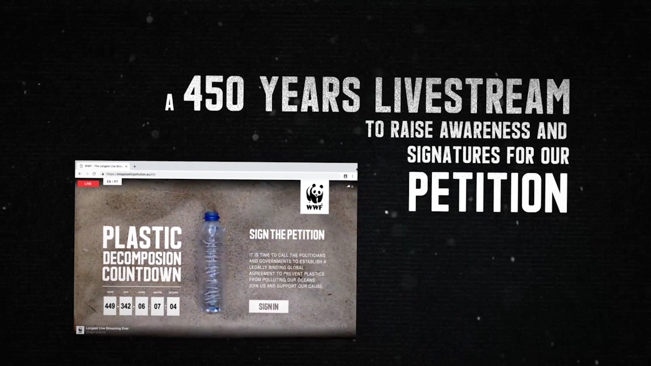 For this reason, WWF has decided to show people the decomposition process of a simple plastic bottle, in real-time, through a livestream that will remain live for 450 years, to raise awareness and get signatures for our petition Stop Plastic Pollution.