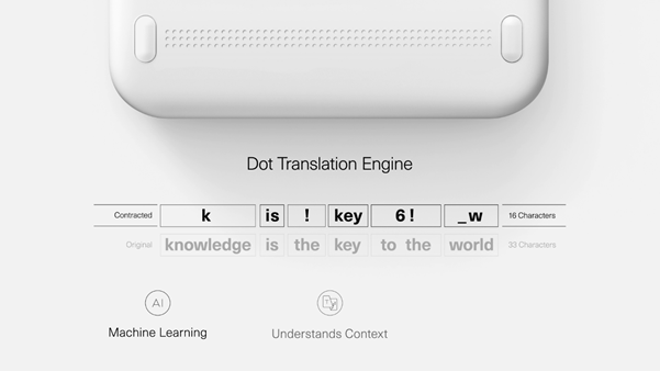 Braille translation is highly complex: Grade 2 Braille - the standard for longer text - relies heavily on contractions. This inevitably leads to ambiguity, where exact meaning depends on context and up to four consecutive rules to be followed for a single word. For advanced areas like sciences or music, there are whole new rulebooks. So far, even the best software requires additional human input. Dot Mini is the first device that can access any digital text content on its own. Because the innovative Dot Translation Engine based on AI understands context and translates efficiently to Grade 2 Braille. Dot Mini provides additional audio support for even faster perception. All in a device that’s multiple times smaller, lighter, energy efficient and cheaper than conventional ones.