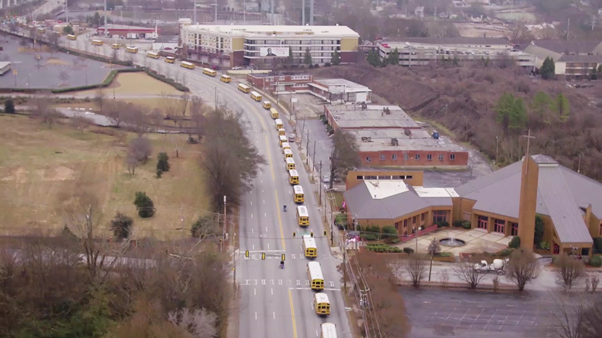 그래서 총 72대의 애틀란타 중심가를 지나는 스쿨버스가