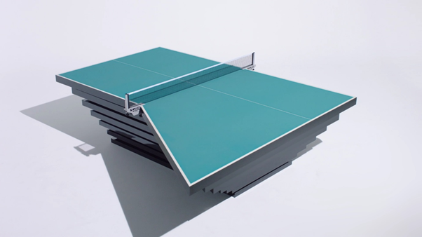 The Para Pingpong Table is a collection of pingpong tables in various shapes that highlights the unique challenges experienced by para-athletes. These tables were designed based on interviews and sketches from members of the Japanese National Team, who were asked to describe the shape of the tables as they 'experience' it, to help visualize and comprehend what it is like to compete as a disabled player. Instead of the conventional method in which a person's mobility is forcibly restrained, an uncomfortable experience that reinforces disability, Para Pingpong Table directs your focus on the exceptional ability of para-atheles and foster renewed respect among those who experience it.