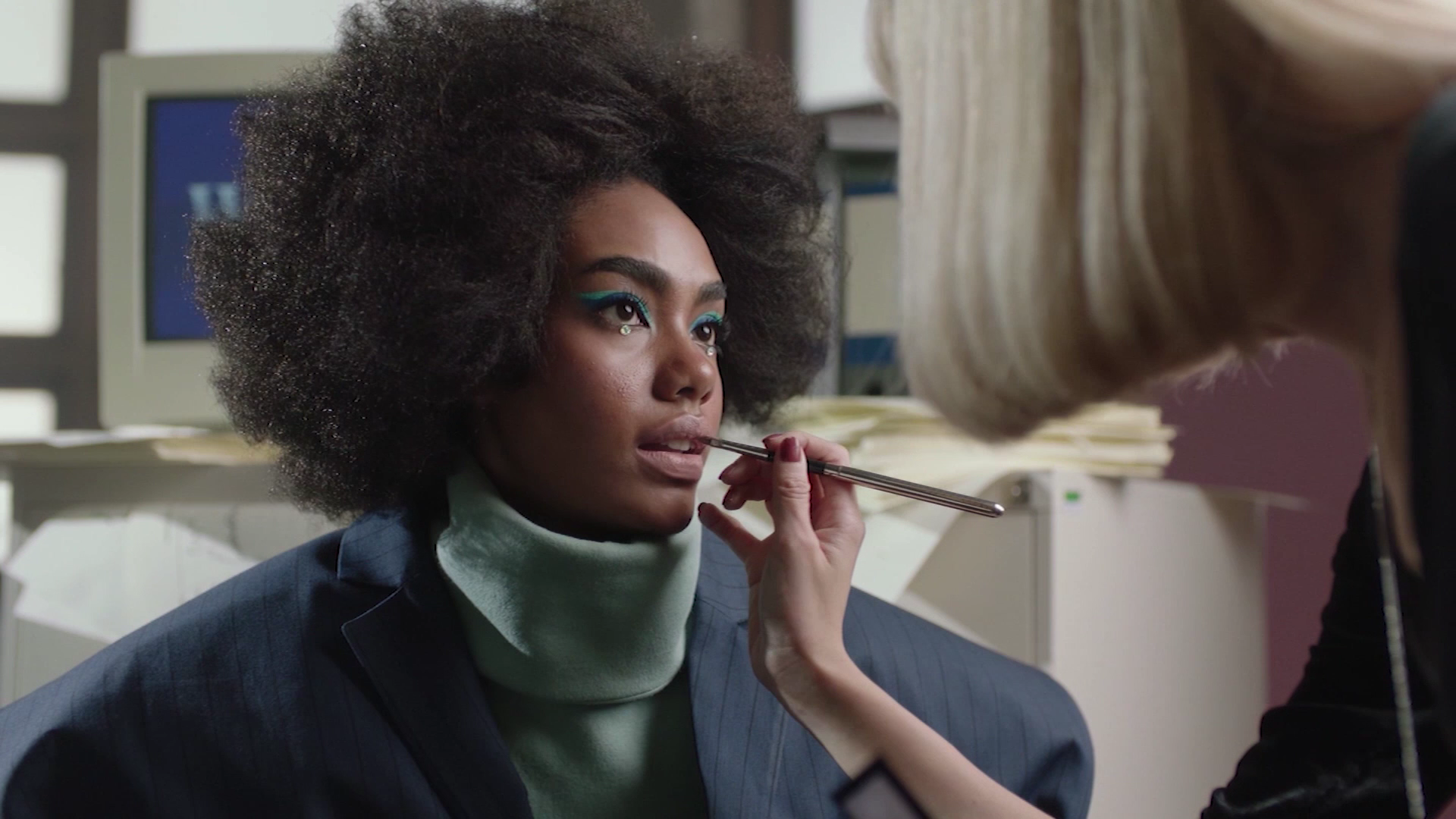 또 다른 모델은 메이크업아티스트에게 메이크업을 받다가