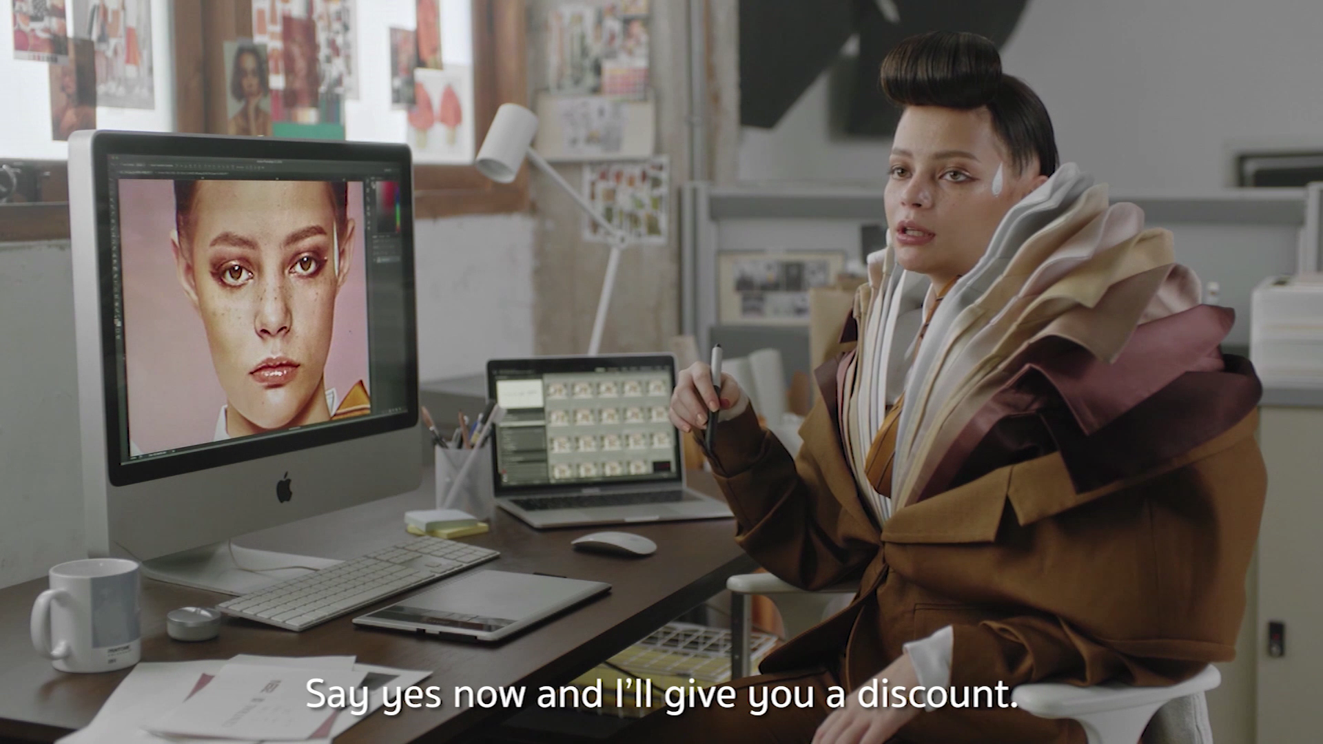 빅토리아는 모델이라는 일이 끝나자 말자 옆 사무실로 뛰어가 사진편집을 시작하는데요.