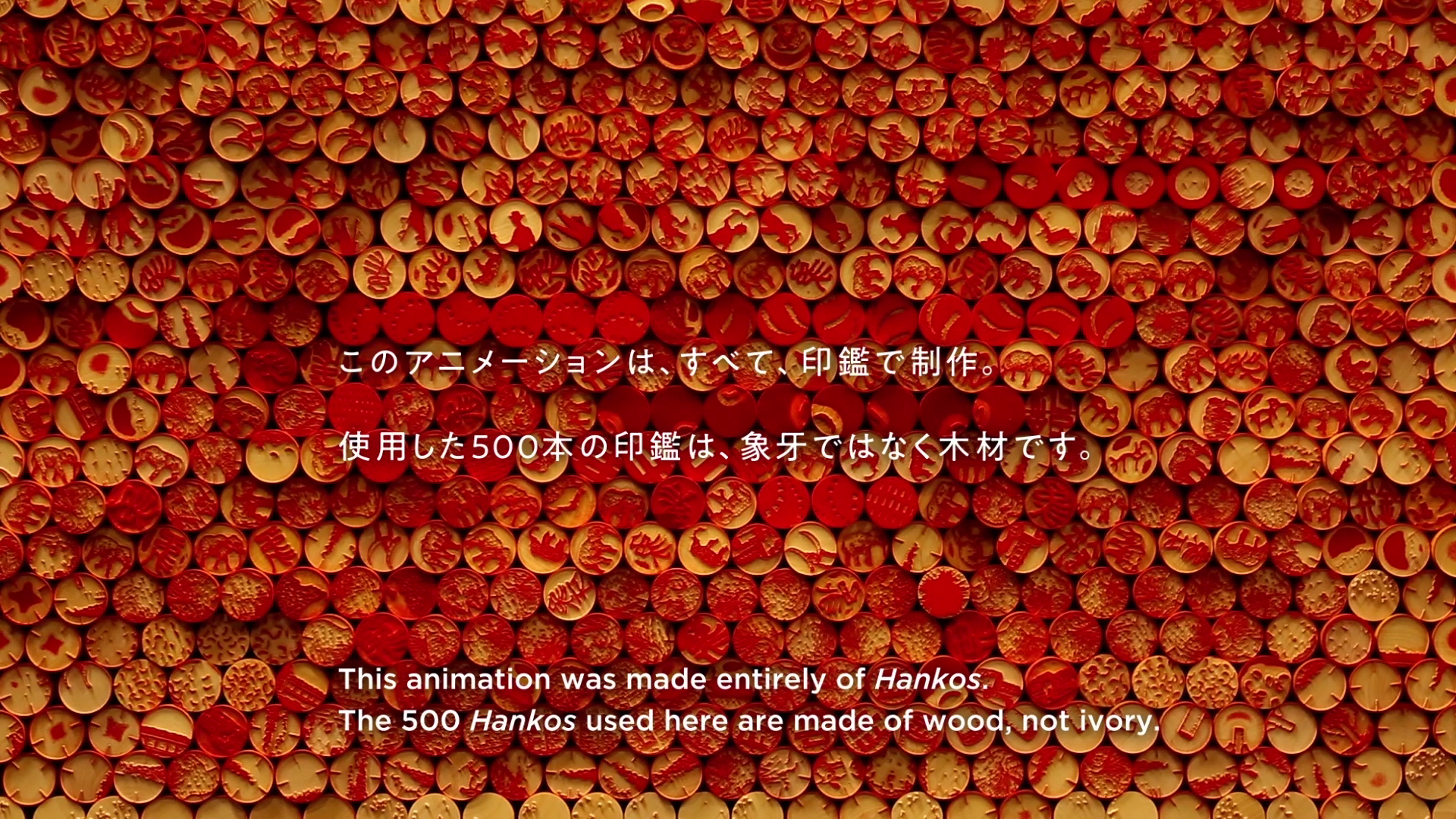 Hankograph was made using 500 wood hanko pressed onto 2400 sheets of paper and shot sheet-by-sheet, to show the tragic cycle of ivory consumption previously unbeknownst to Japanese people.