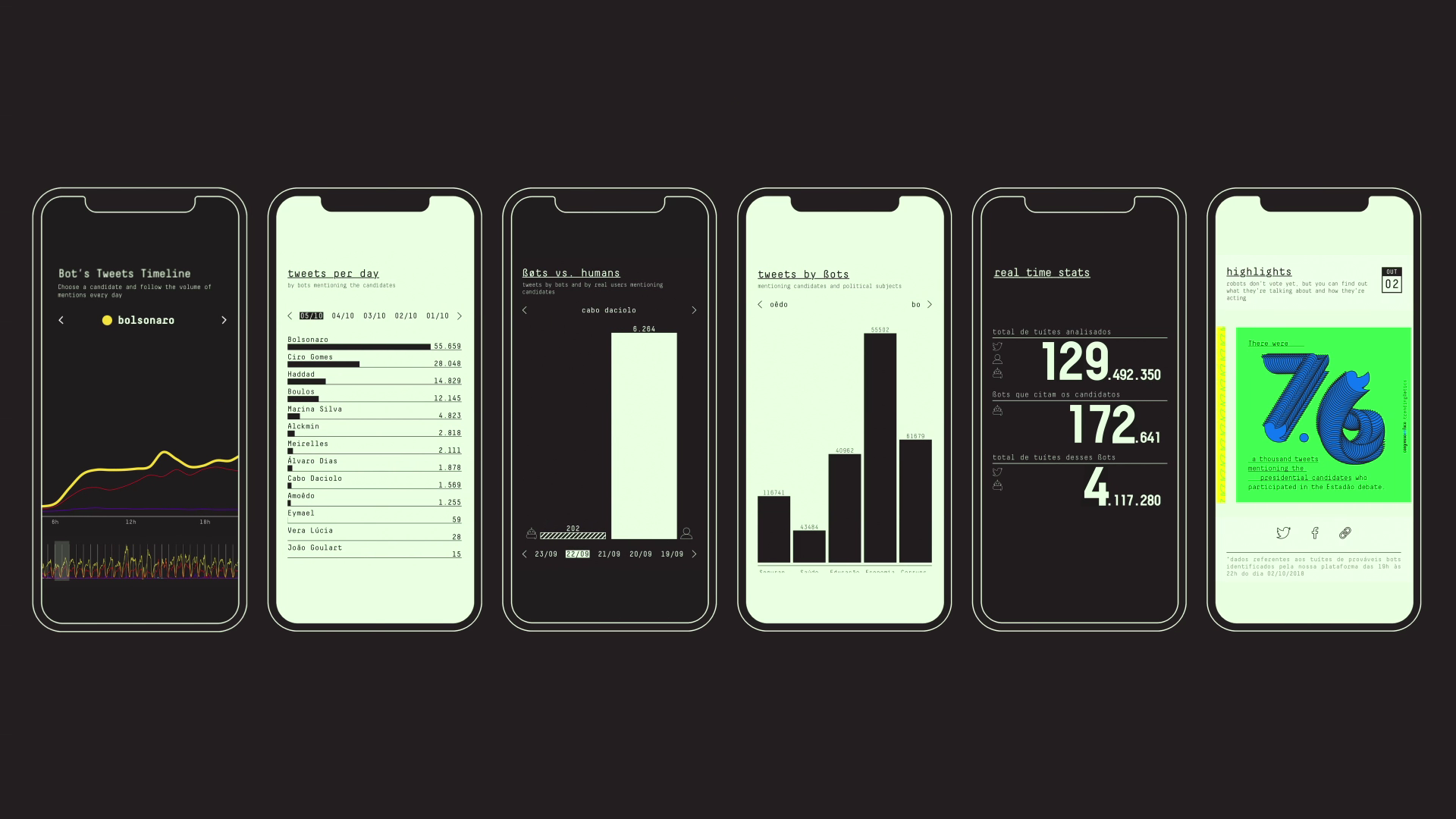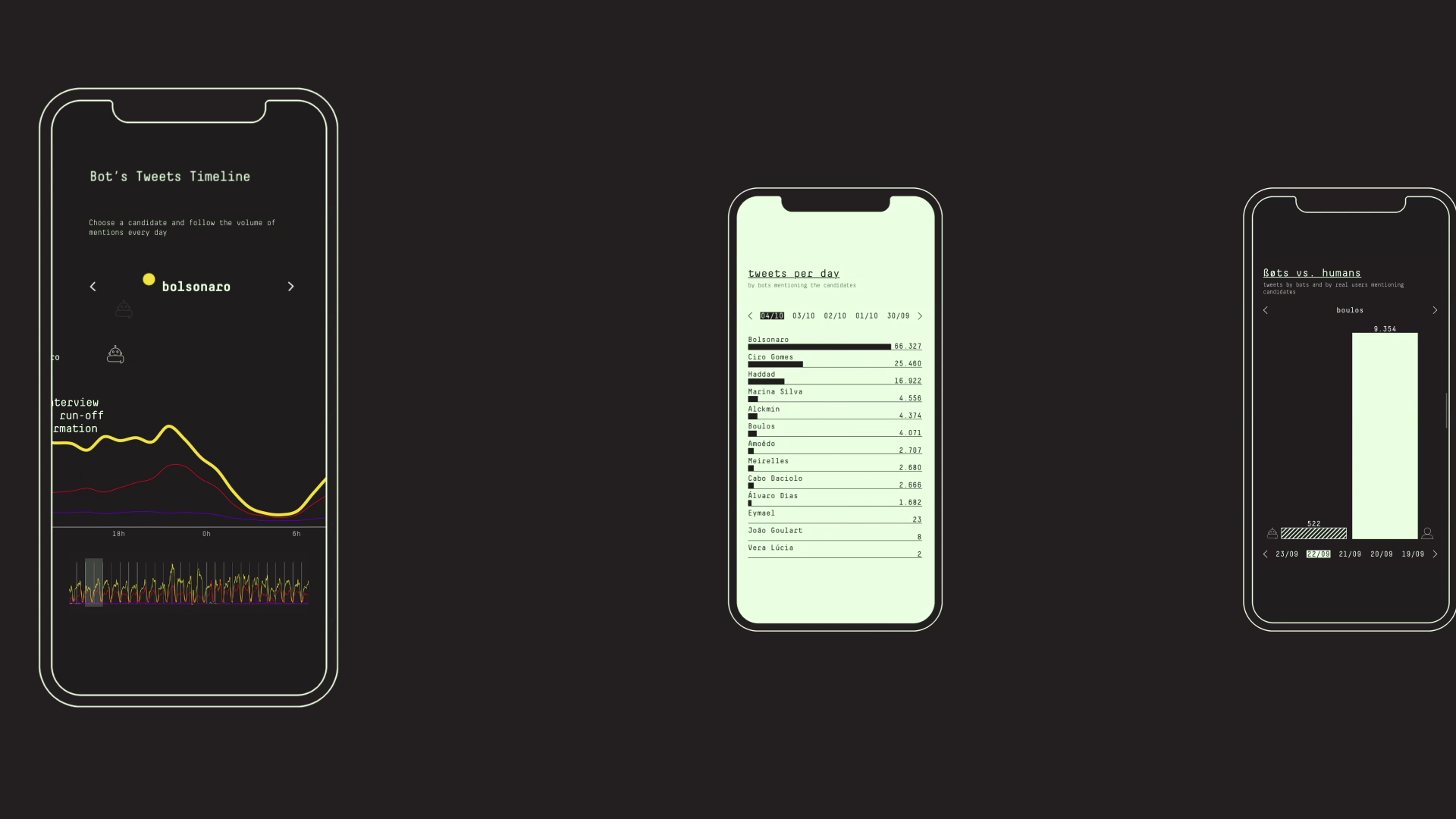 To make people aware of this manipulation, Congresso em Foco combined an algorithm that identifies political bots with Twitter’s streaming API, developing a platform on which users could follow and compare the topics most tweeted about by these bots and their response to every new significant event related to the election, up to election day.