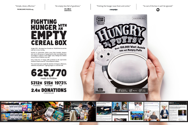 4주 만에 Hungry Puffs 캠페인은 서호주 어린이들을 위해 625,770개의 식사를 만들었고