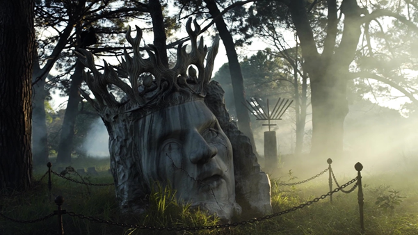 예를 들어 그의 개들에게 먹힌 램지 볼튼의 무덤은 바닥에 개 그릇이 으스스하게 배치된 특징이 있습니다.