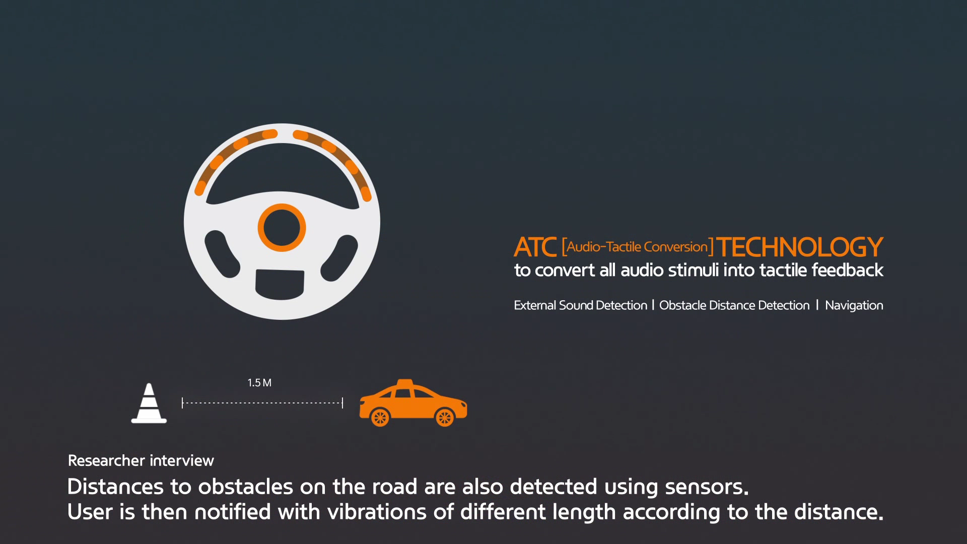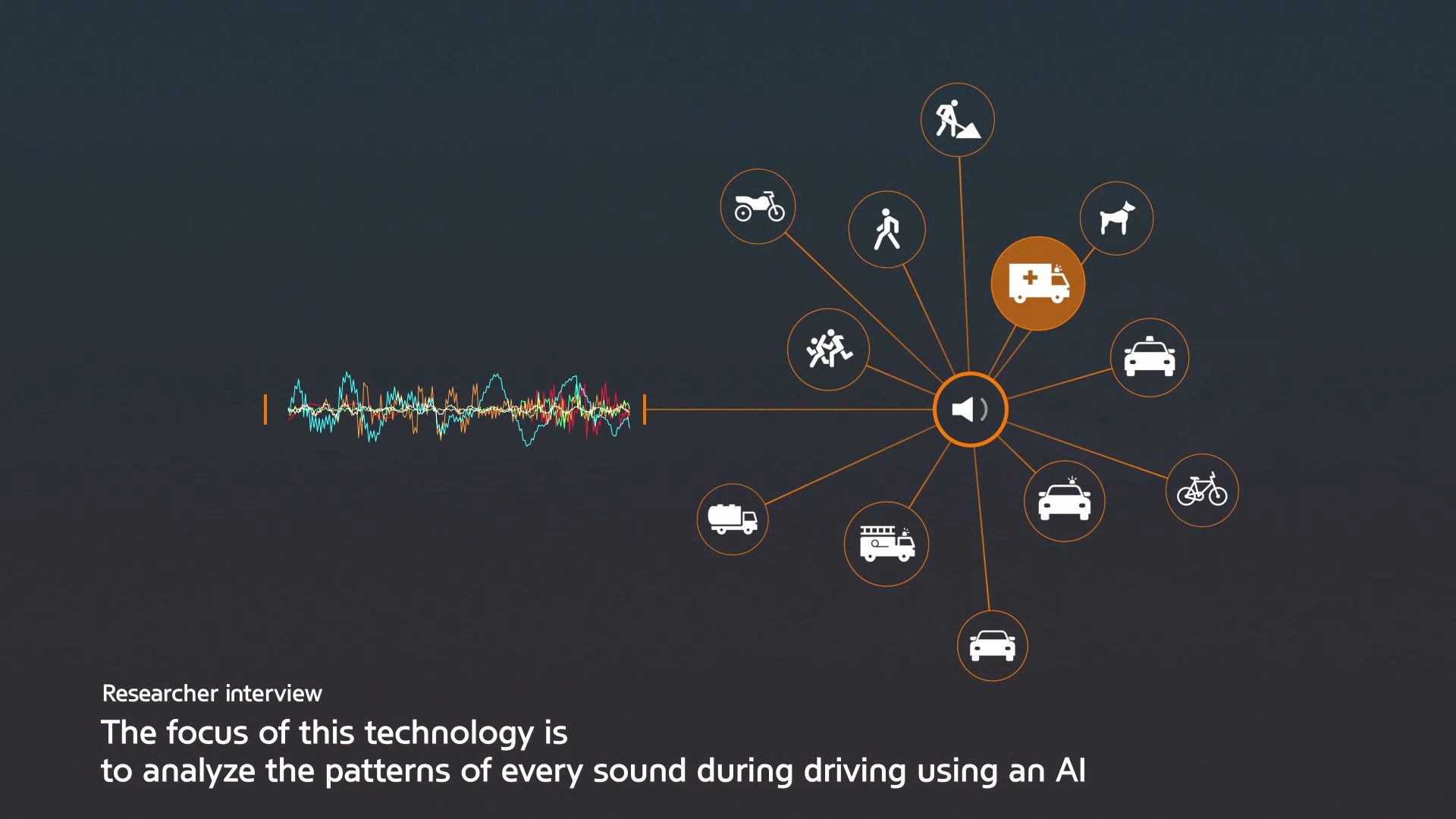 각종 소리를 구분해 휠의 LED와 픽토그램으로 전달하는 것이 이번 기술의 핵심입니다.